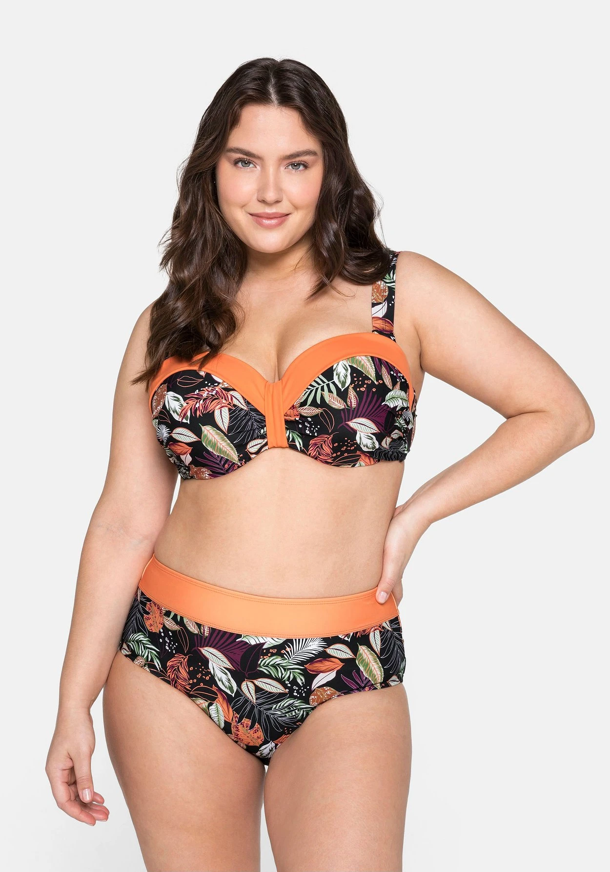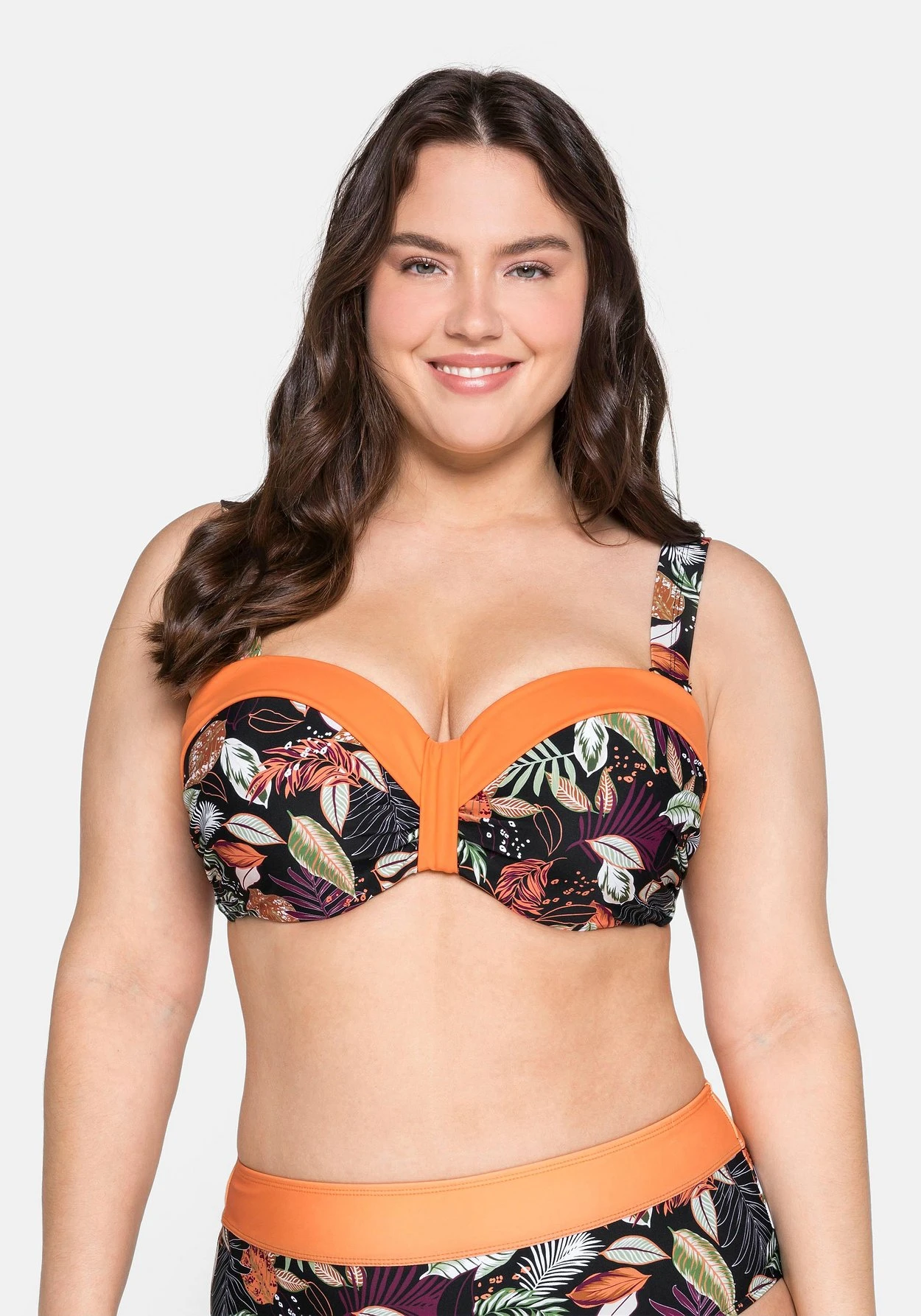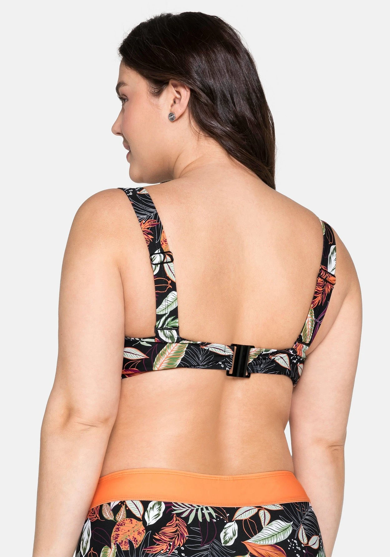 Bikini-Oberteil mit Bügeln von sheego by Joe Browns. Zum hübschen floralen Muster setzen die unifarbenen Details einen modernen Kontrast. Für optimalen Halt sind die abnehmbaren Träger in der Länge verstellbar und außerdem etwas breiter geschnitten. Die wattierten Cups mit Bügeln geben der Brust optimalen Halt. Dank des Mix & Match-Charakters lassen sich dazu Bikinihosen in unterschiedlichen Formen aus der sheego by Joe Browns Badekollektion kombinieren.