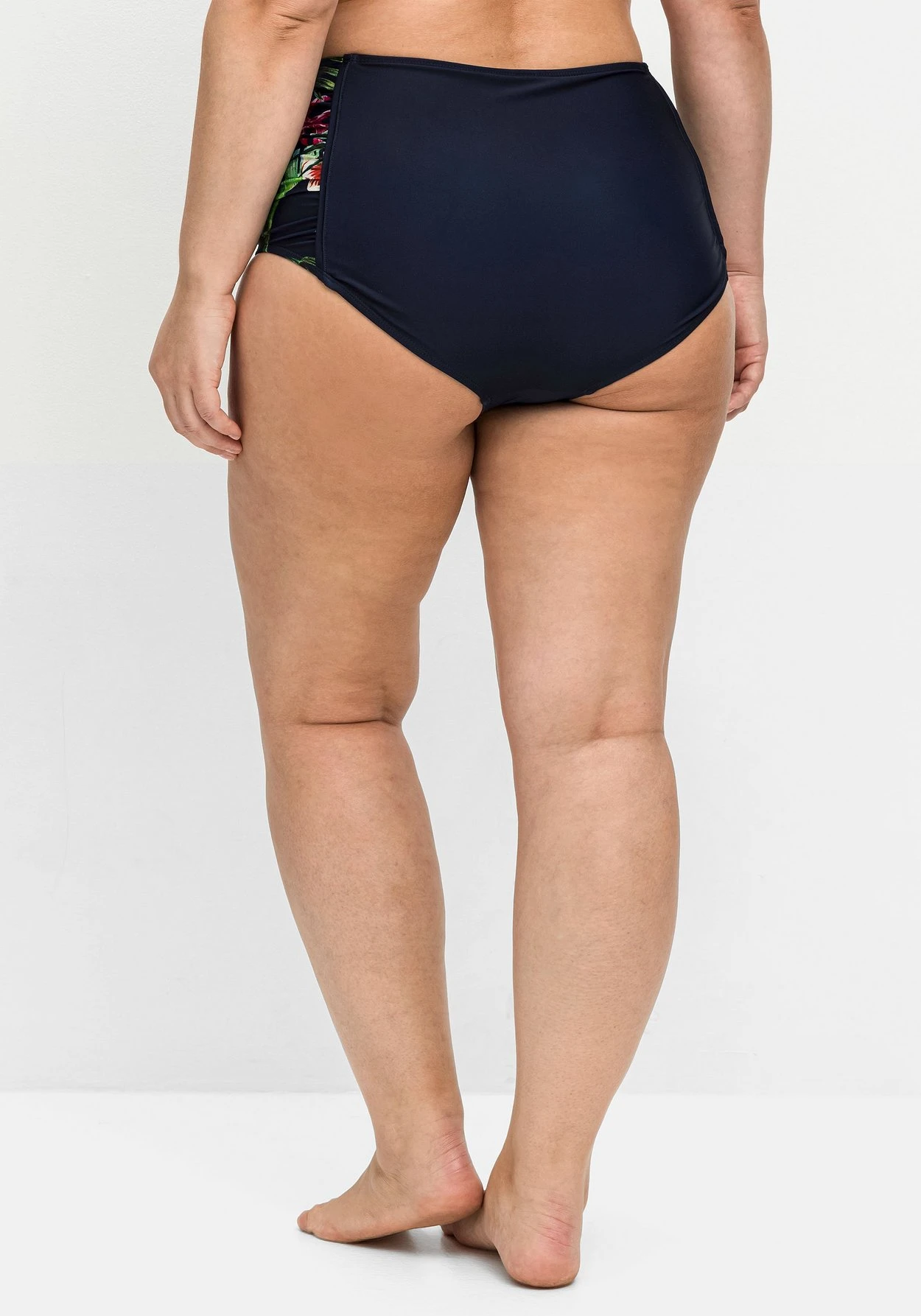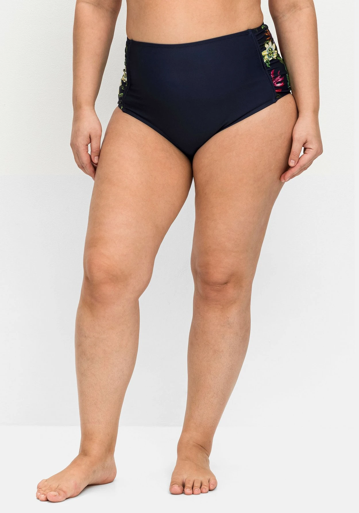 Bikinihose in High-Waist-Form von sheego by Joe Browns. Seitlich fällt der Blumendruck ins Auge, der jedes Teil zum Unikat macht. Unifarbene Paspeln sind dazu eine modische Ergänzung. Dank des Mix & Match-Charakters lässt sich diese Hose wunderbar mit anderen Teilen aus der sheego by Joe Browns Badekollektion kombinieren.