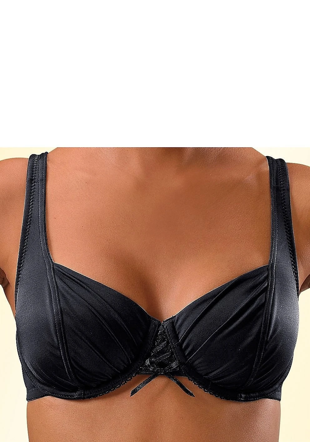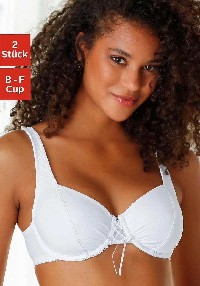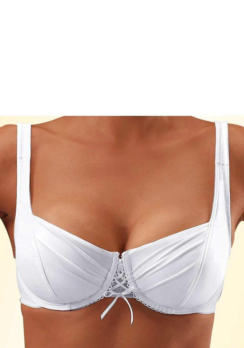 Zauberhafter Bügel-BH mit hübschen Carrée-Auschnitt und breiten Außenträgern, was Ihr Dekolleté besonders gut zur Geltung bringt! Ideal zu tragen unter weit ausgeschnittener Kleidung. Die Cups mit ihren dekorativen Raffungen und die Zierschnürung in der vorderen Mitte zaubert einen verspielten Look. Die etwas breiteren Träger sind hinten elastisch und verstellbar. Der Rückenverschluss mit Häkchen und Ösen bietet 3 Verstellmöglichkeiten. Im attraktiven Doppelpack zu bestellen. Unsere Styling Empfehlung: tragen Sie diesen BH zum Dirndl. Sexy Dessous. Spitzen-Dessous. Romantische Dessous. Verspielte Dessous. Aus 82% Polyamid (Tactel®), 18% Elasthan (LYCRA®).