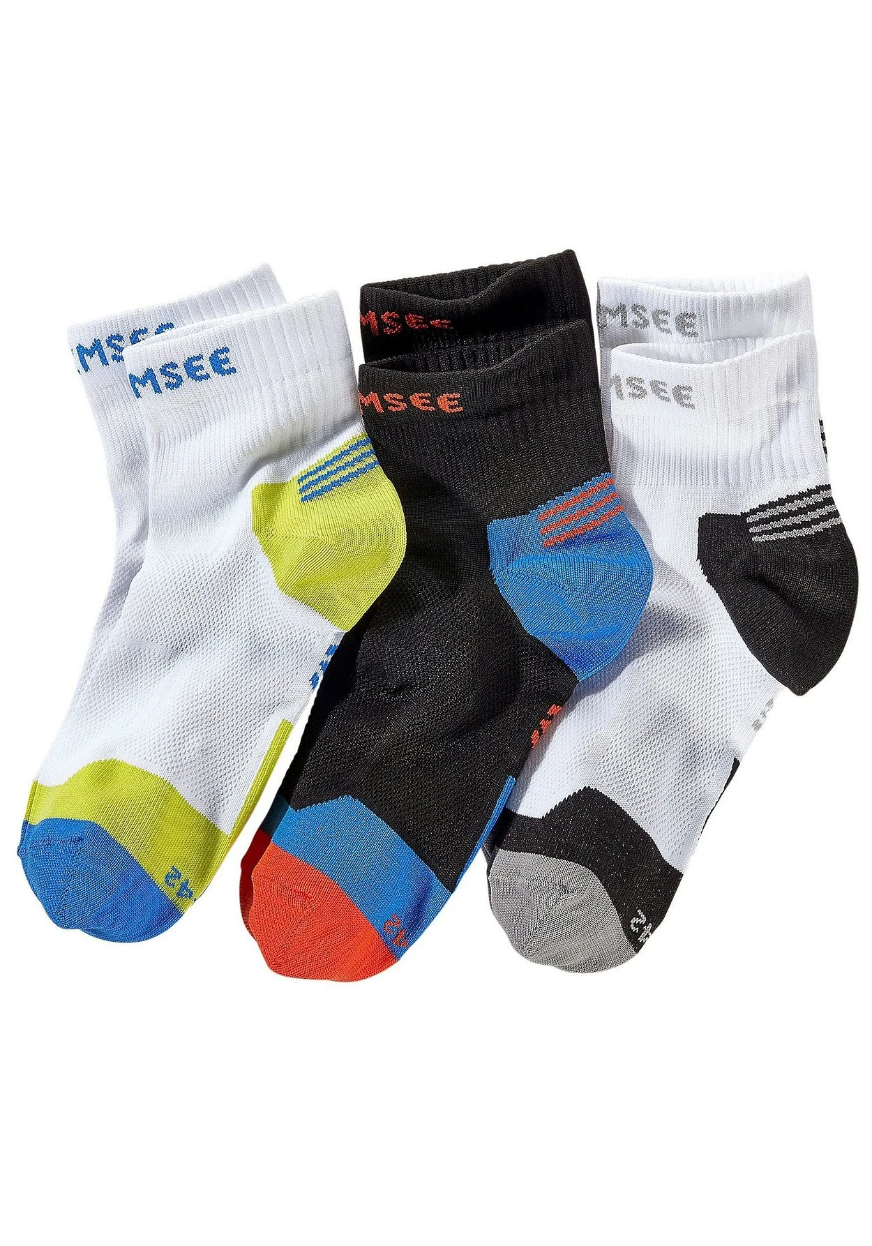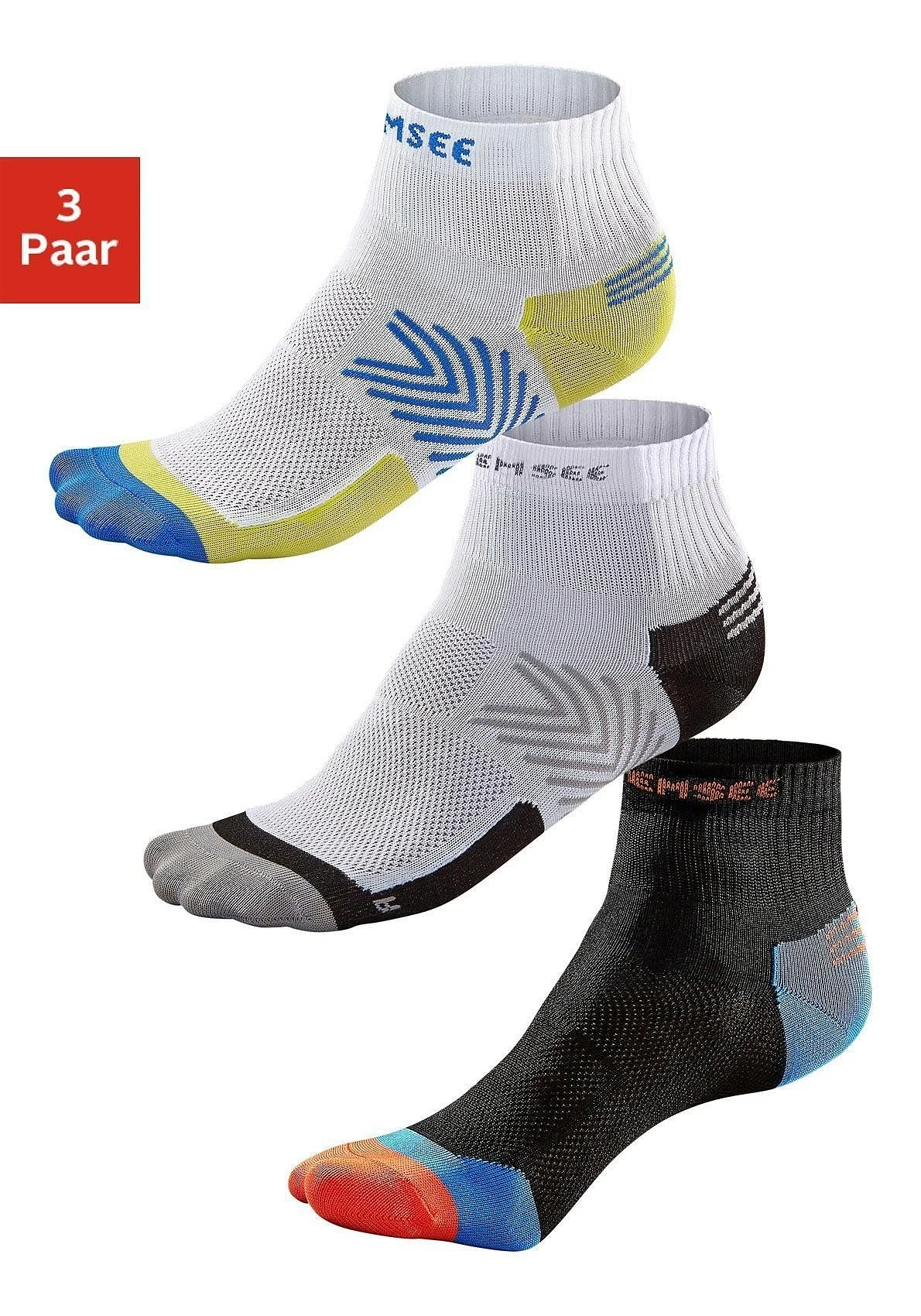 Die „Running“ Socke von Chiemsee! Im 3er Pack erhältlich. Ein elastisches Bündchen garantiert einen perfekten Sitz. Durch flache Nähte und einen breiten Piqué-Strick erreicht die Funktionskurzsocke ihr angenehmes Tragegefühl.