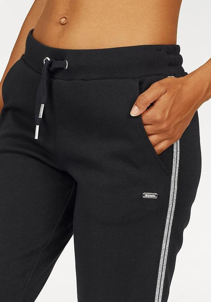 Relaxhose von Bench. Modischer Seitenstreifen in Metallic-Optik. Breiter Bund mit regulierbarem Kordelzug. Eingrifftaschen. Aus 60% Baumwolle (unterstützt Cotton made in Africa), 40% Polyester.