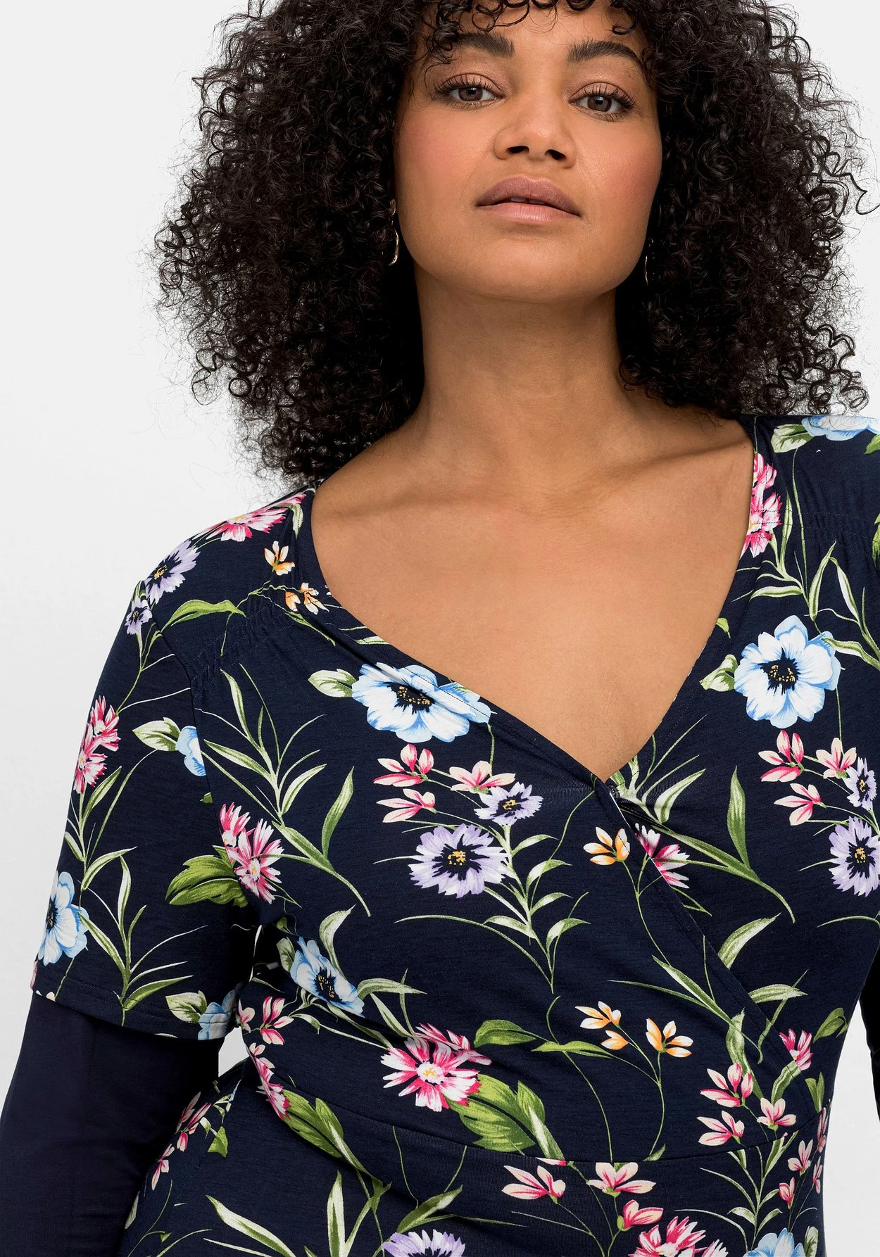 Die leicht elastische Viskose fällt weich fließend und trägt sich sehr angenehm. Für die Herstellung von LENZING™ ECOVERO™ Viskose werden ausschließlich zertifizierte, nachhaltige Holzressourcen verwendet. Auch der gesamte Produktionsprozess entspricht streng den Richtlinien des EU Öko-Labels. LENZING™ und ECOVERO™ sind Marken der Lenzing AG. sheego cares!