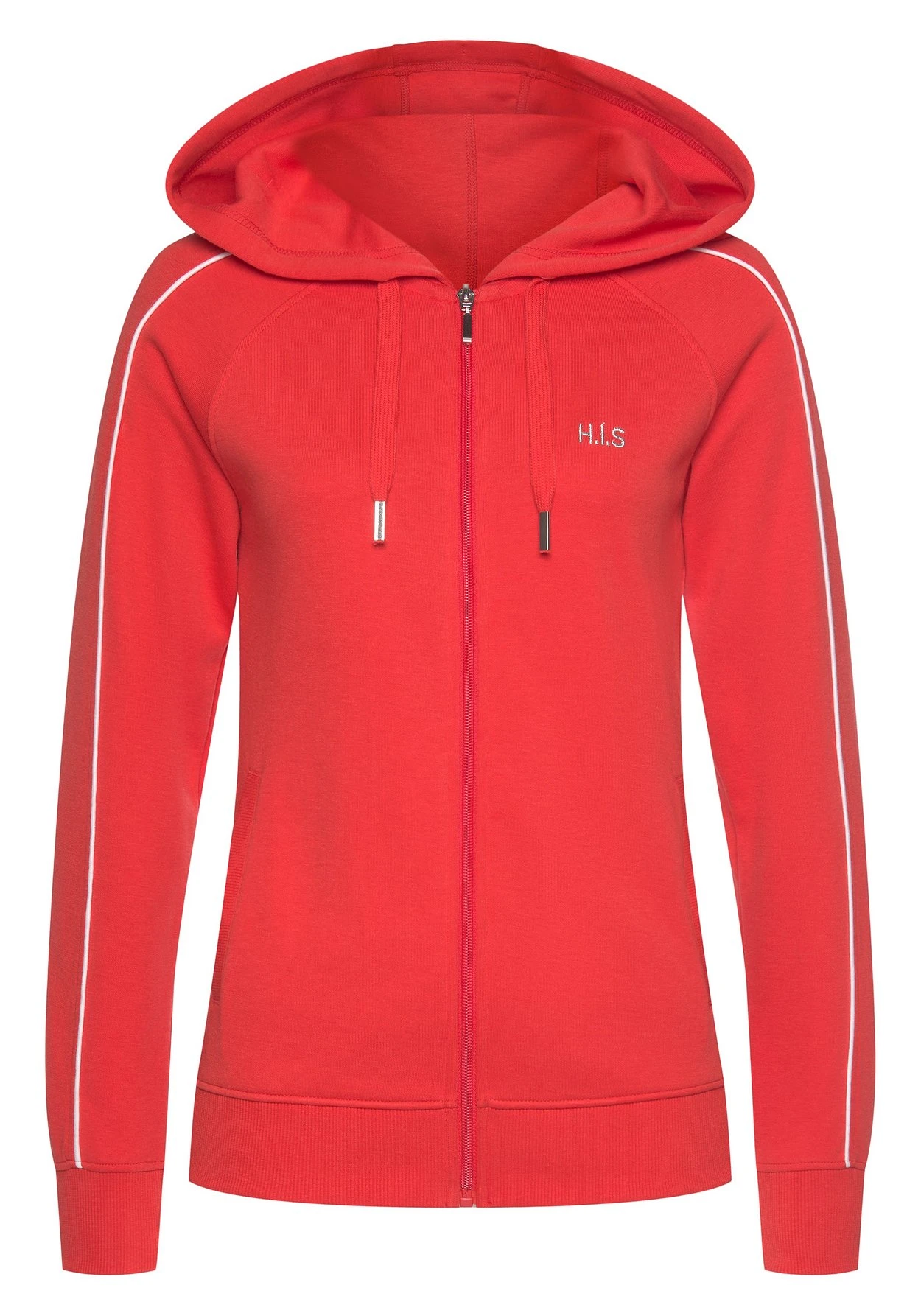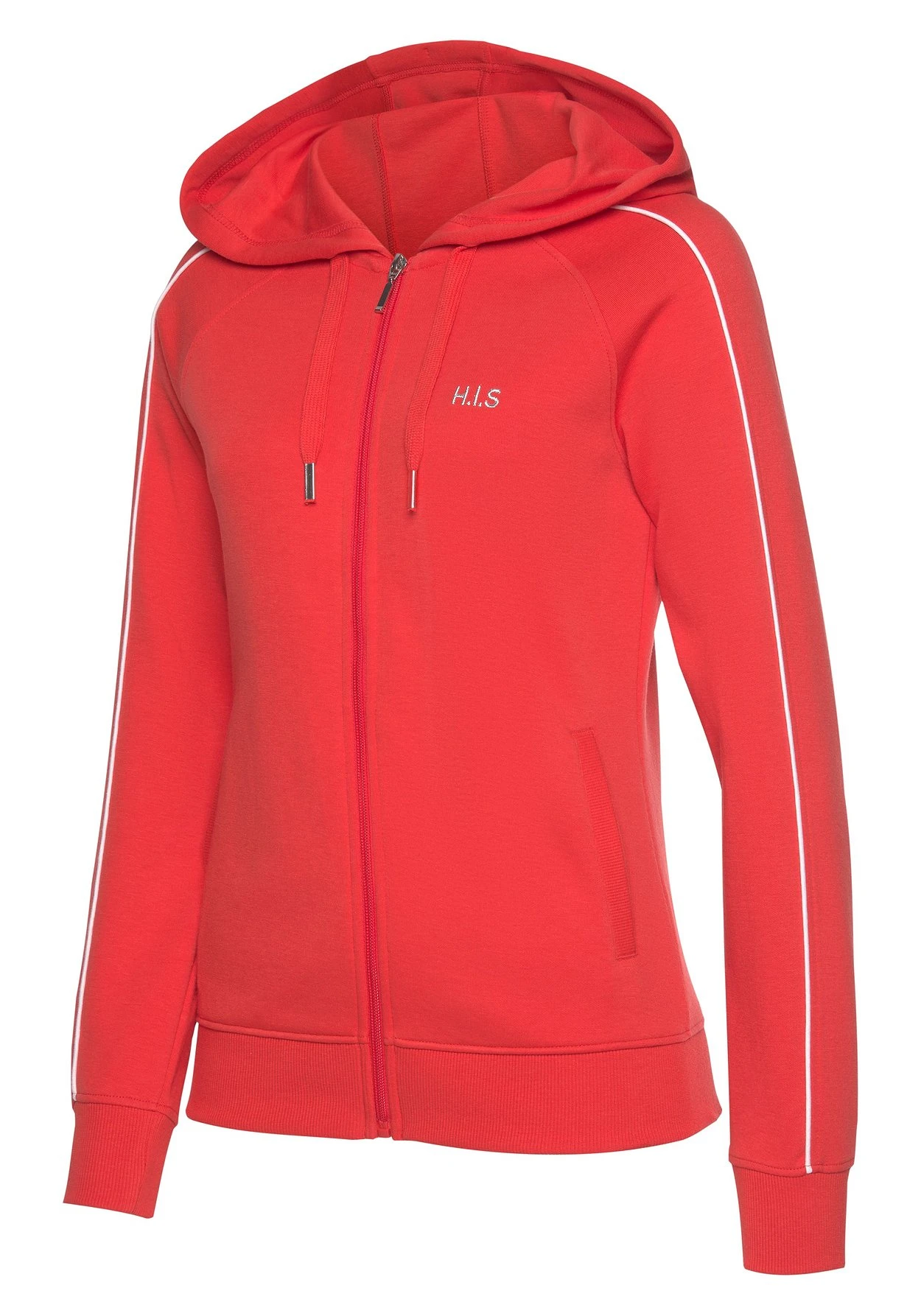 H.I.S sportlich Kapuzenjacke. Piping entlang der Arme. Praktische Eingrifftaschen. Aus 60% Baumwolle , 40% Polyester.