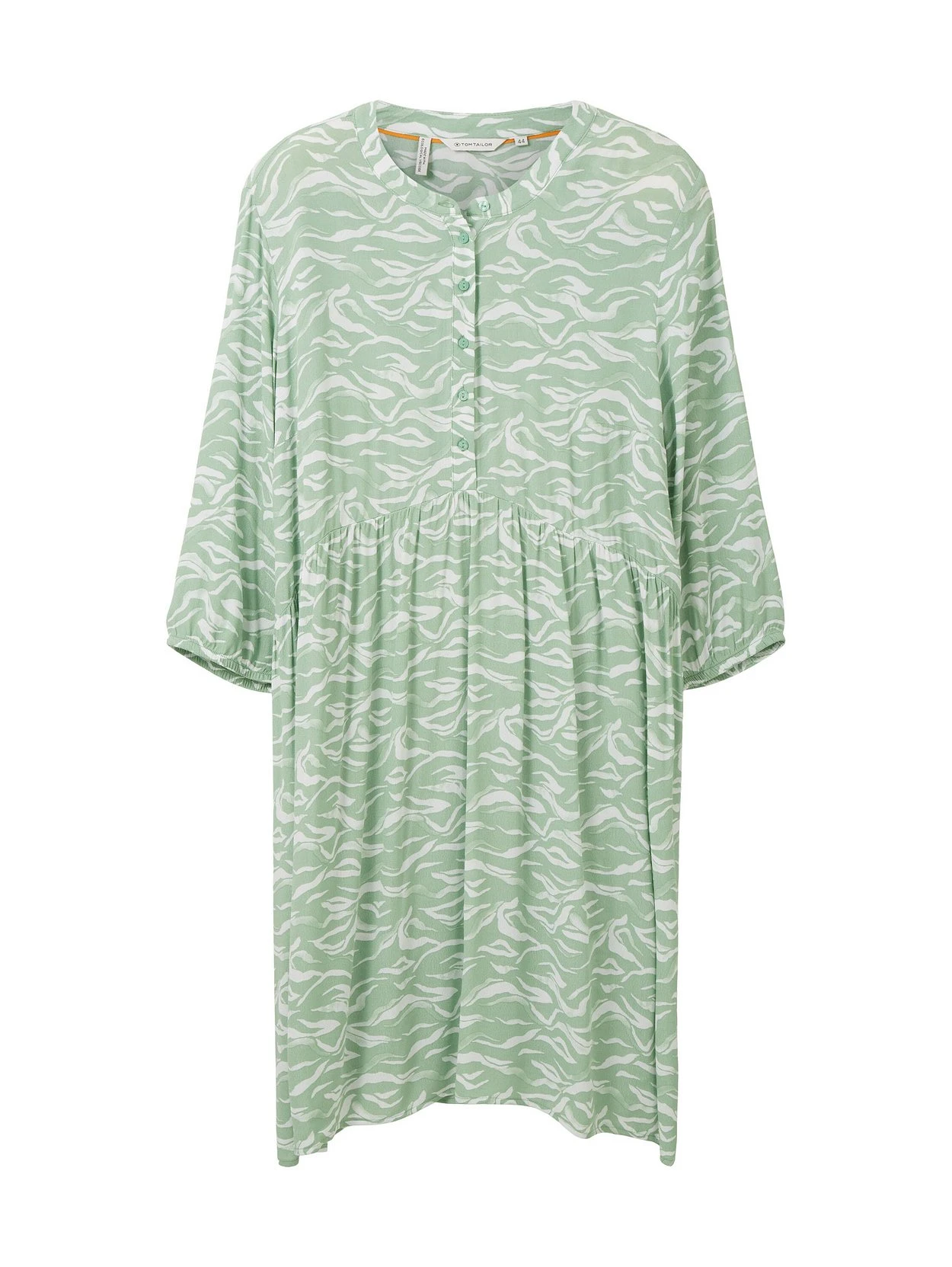 Kleid von TOM TAILOR Plus. Das locker fallende Kleid zeigt sich im luftigen Hängerchen-Stil. Es ist mit Rundhalsausschnitt und halber Knopfleiste gearbeitet, durch das dynamische Wellenmuster erhält es eine moderne Optik. Die 3/4-langen Ärmel enden mit elastischen Bündchen, die Teilungsnaht lenkt den Blick auf die Körpermitte.