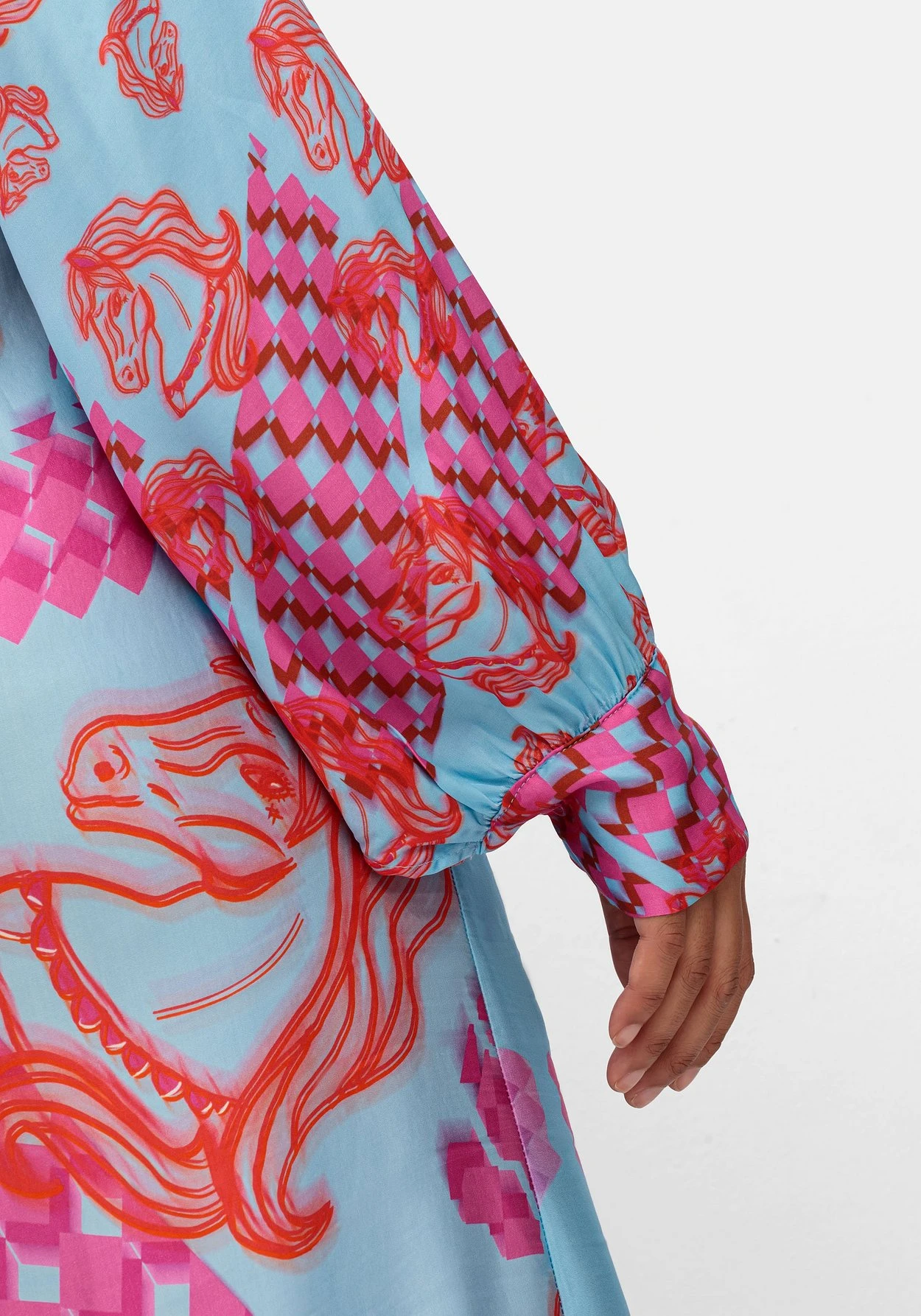 Die leicht glänzende Qualität aus reinem Viskosesatin fällt fließend und liegt dabei angenehm kühl auf der Haut.