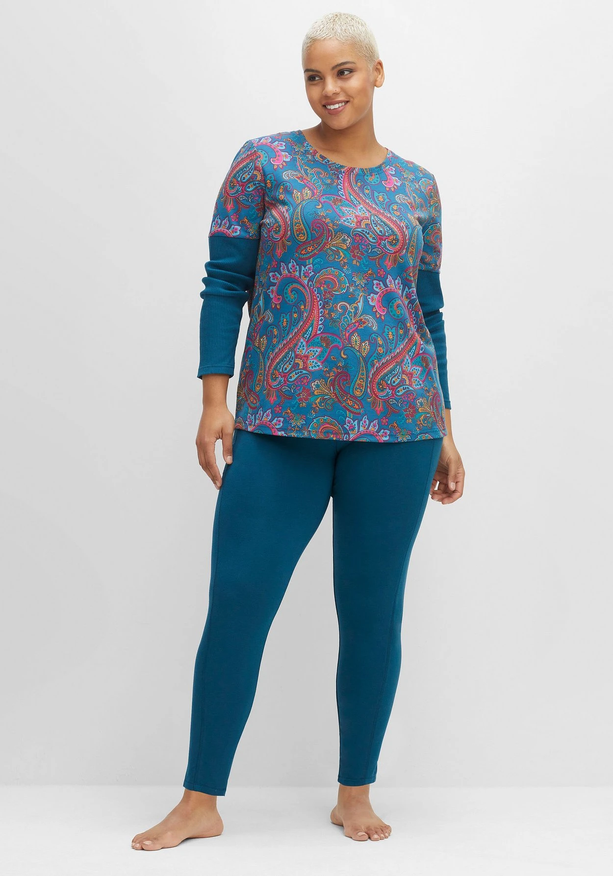 Relaxhose von sheego by Joe Browns in schmaler, knöchellanger Form. Die bequeme Schlupfform mit breitem elastischem Bund eignet sich bestens, um zu entspannen. Praktische Eingrifftaschen mit Rippbünden, gerippte Einsätze seitlich am Bund sowie dekorative Nähte geben dem lässigen Loungewear-Look einen sportiven Touch.