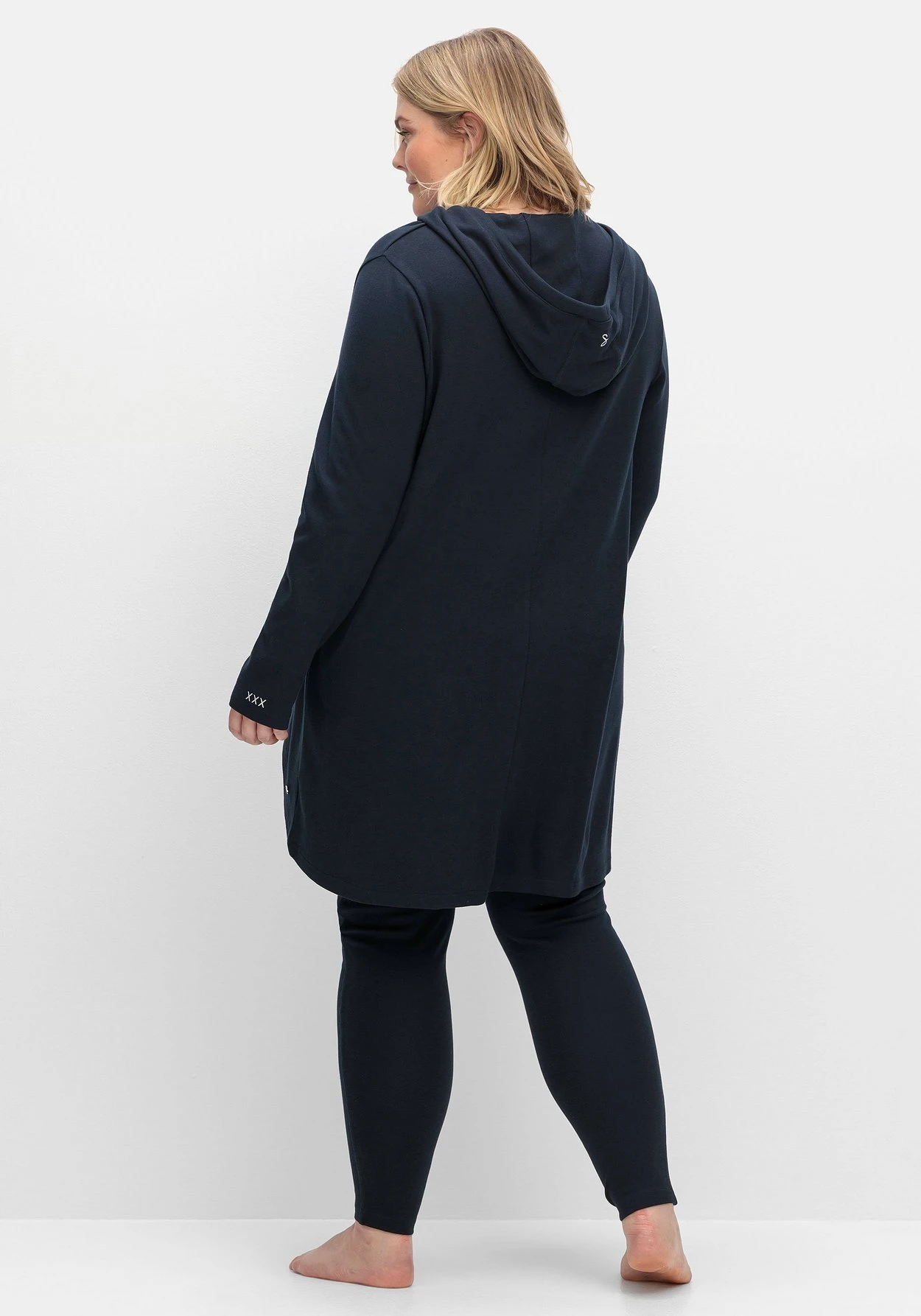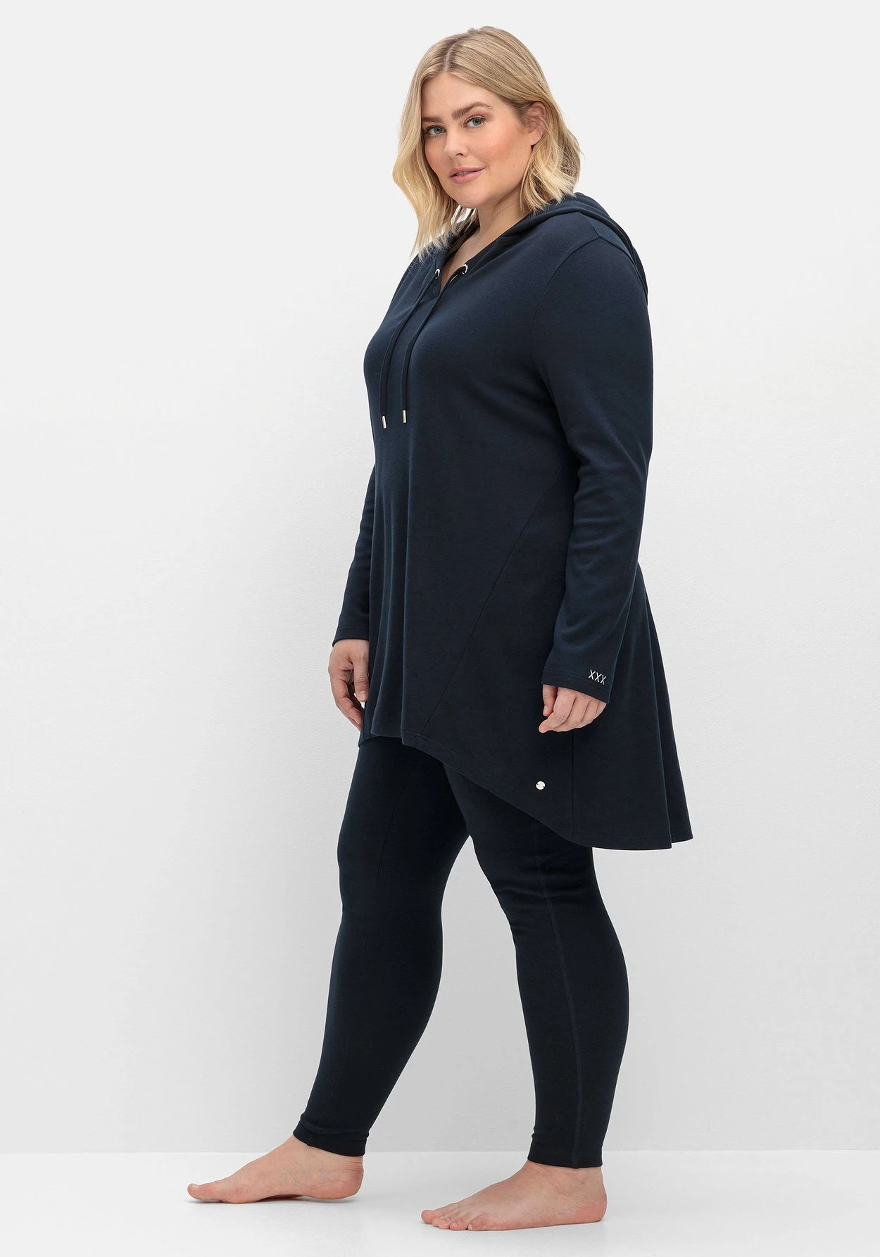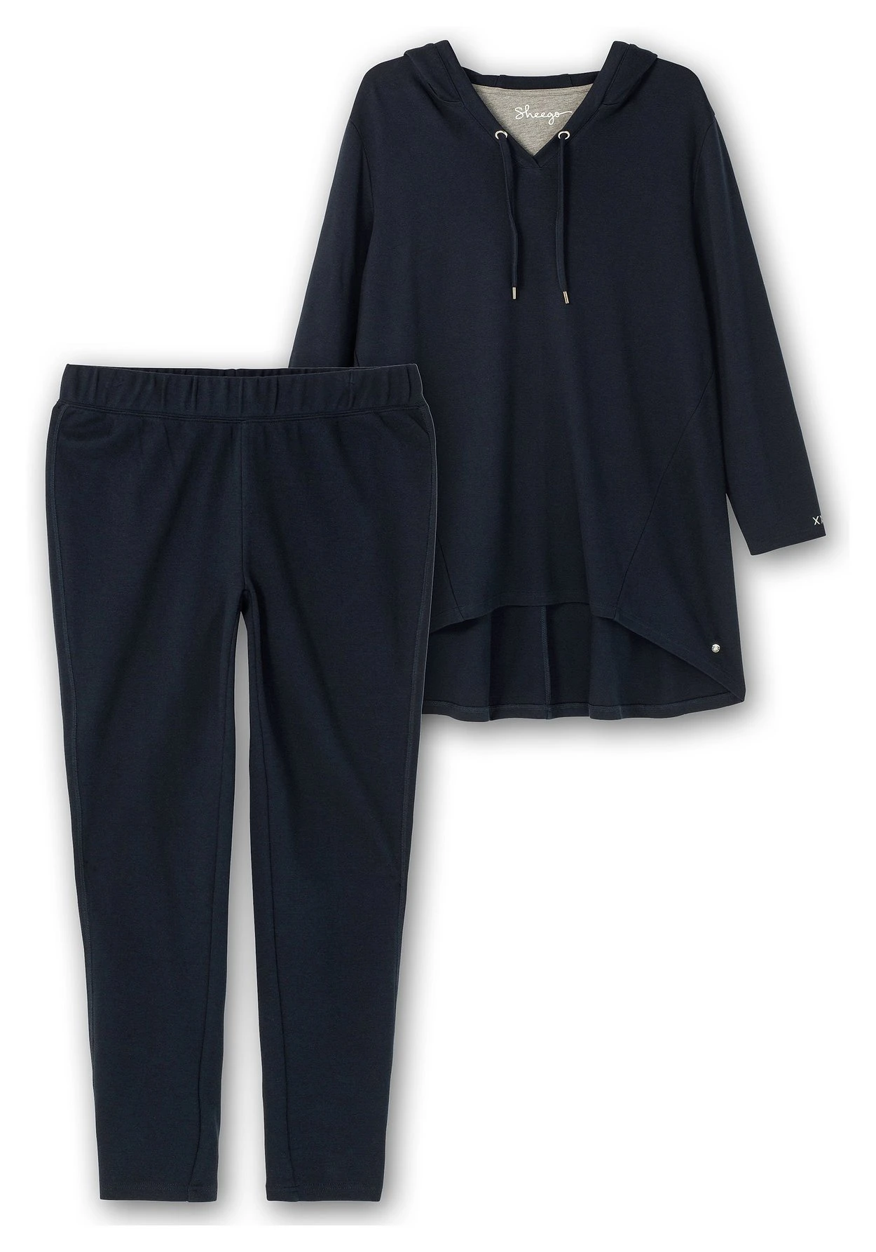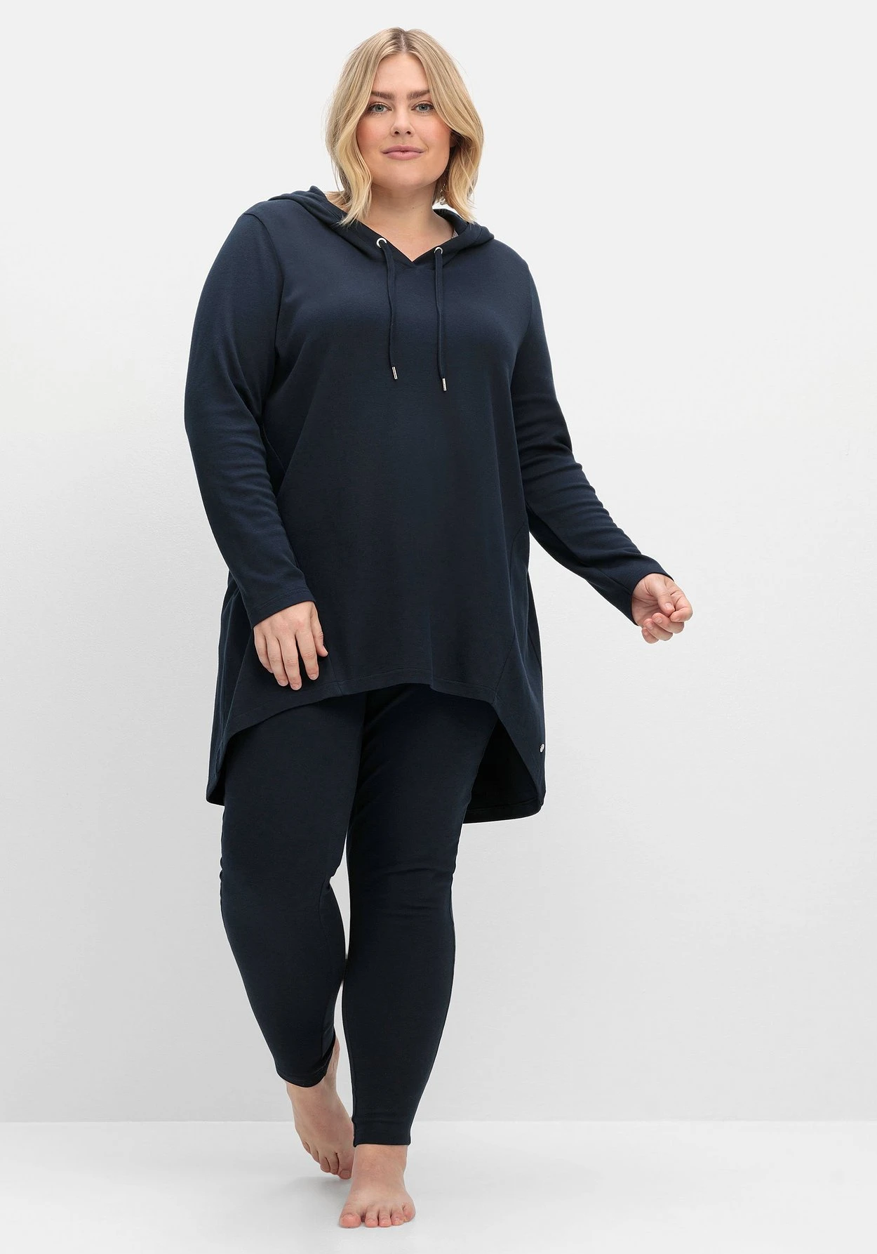2-tlg. Homewear-Set zum Relaxen. Das Longshirt ist hinten länger als vorn geschnitten und lässt so eine modische Vokuhila-Optik entstehen. Für den lässigen Look sorgt die Kapuze mit Bindeband, geschickt gesetzte Teilungsnähte vorn und hinten strecken die Figur. Kleine dekorative Stickereien schmücken die Kapuze sowie den Ärmelsaum. Leggings mit bequemem Gummizugbund machen den Wohlfühllook komplett.