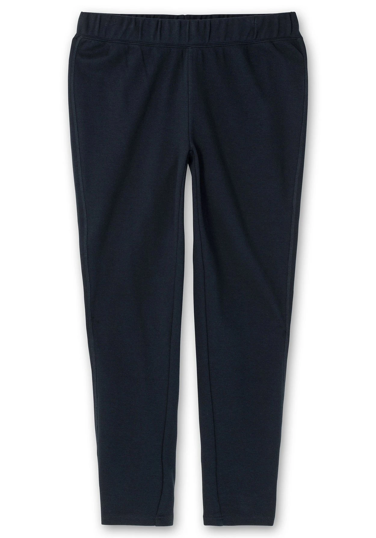 Das Oberteil in bequemer A-Linie umspielt locker die Bauchpartie. Der gerundete Saum ist hinten länger als vorn und fällt so schmeichelnd über Po und Hüfte. Die figurnahe, lange Hose ist mit schmalem Bein geschnitten.