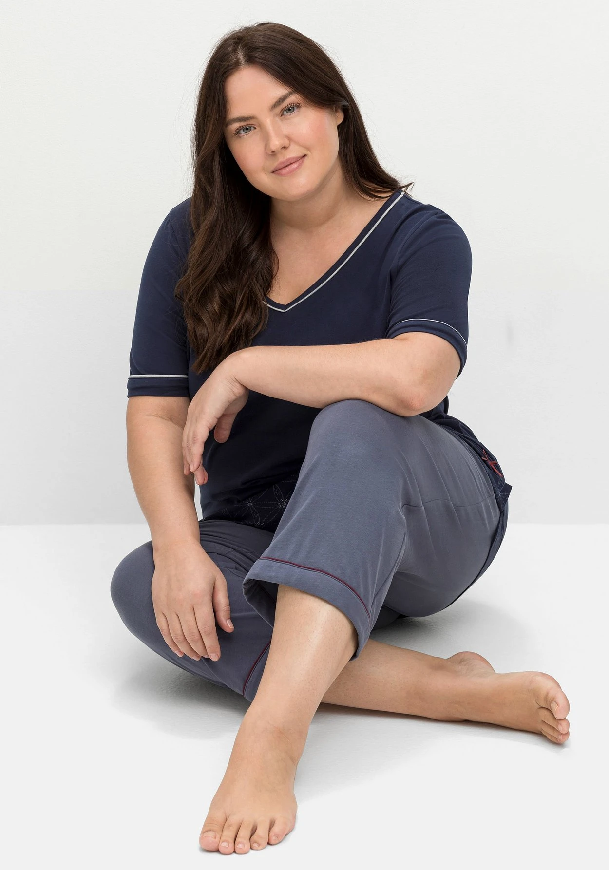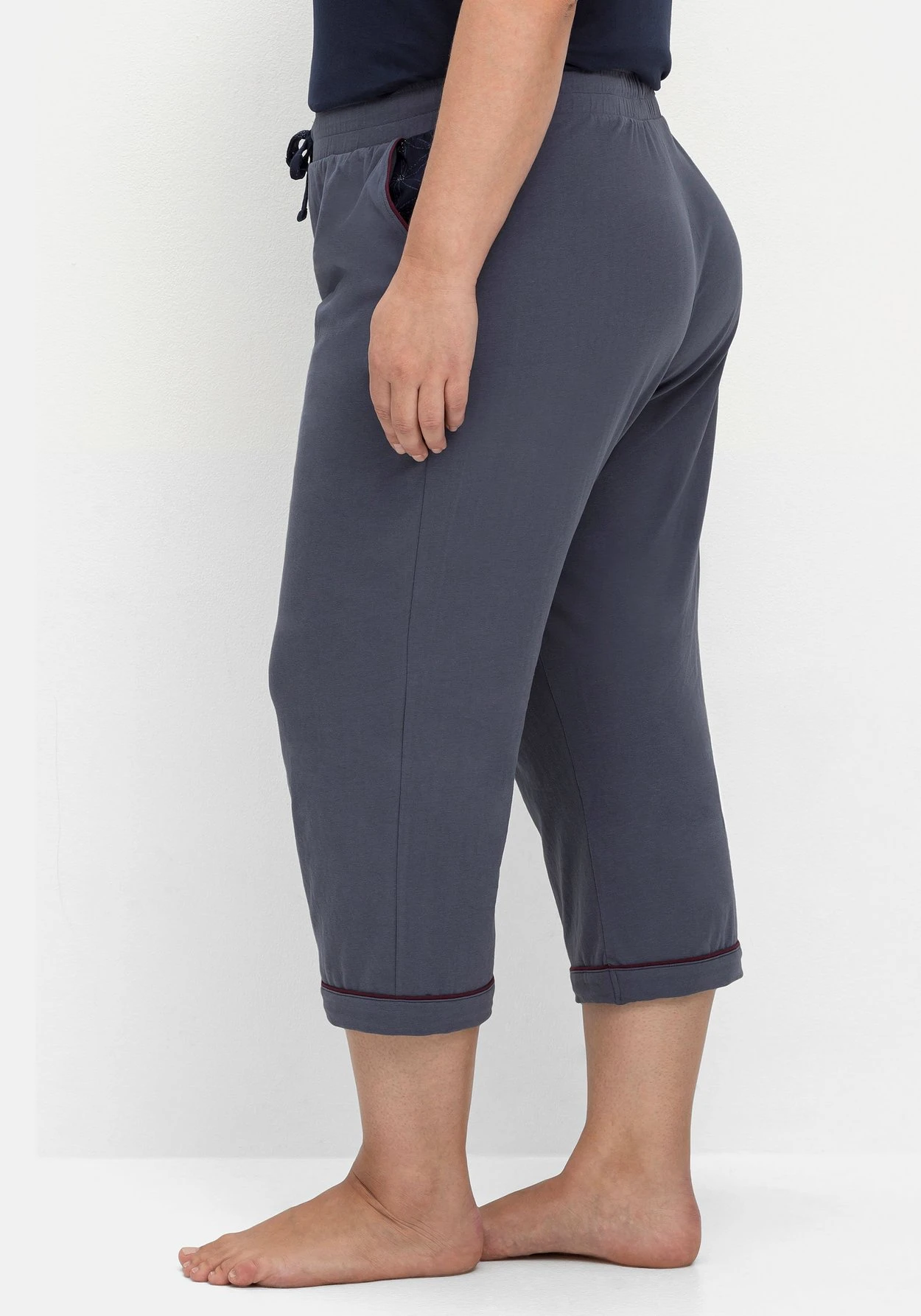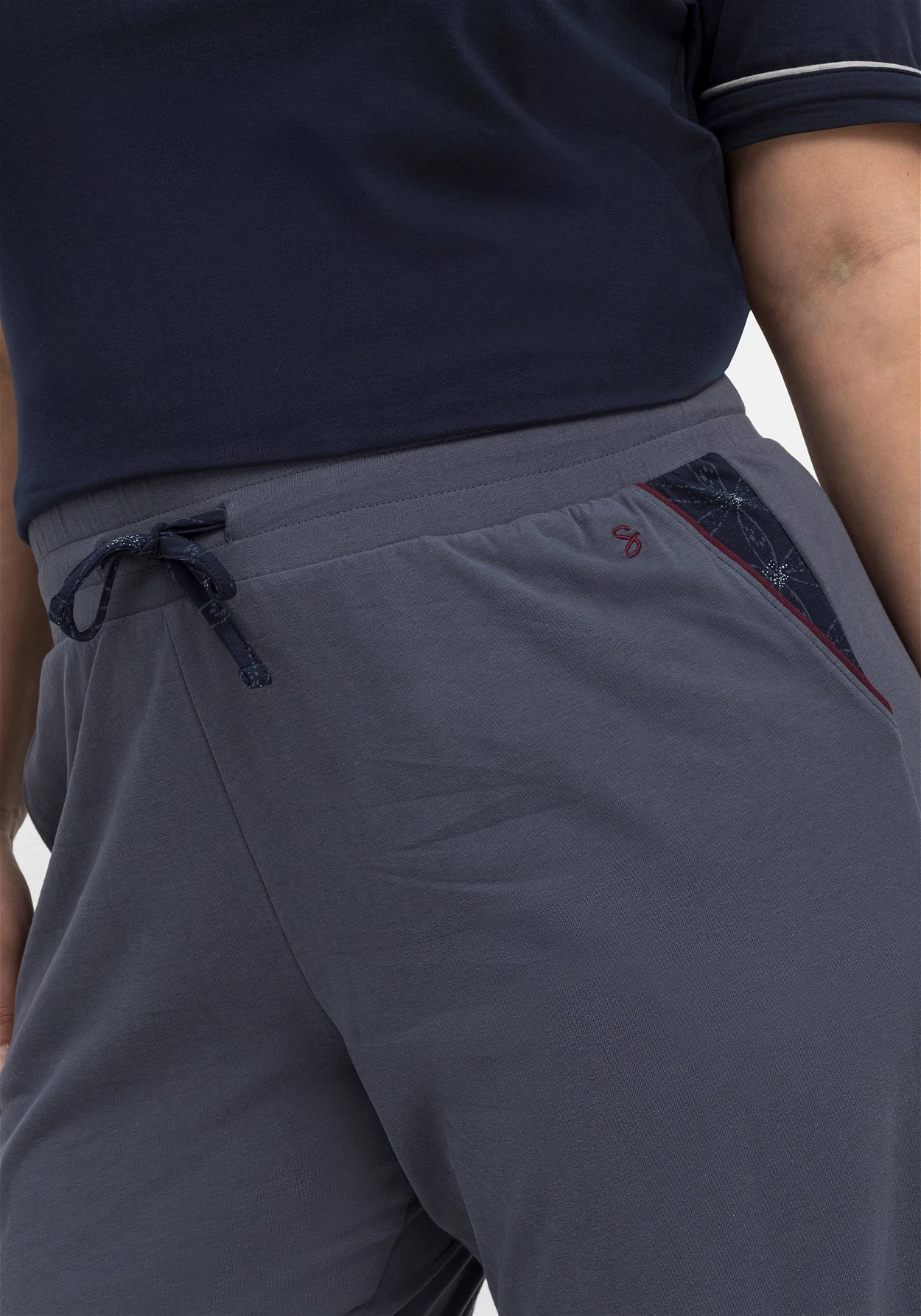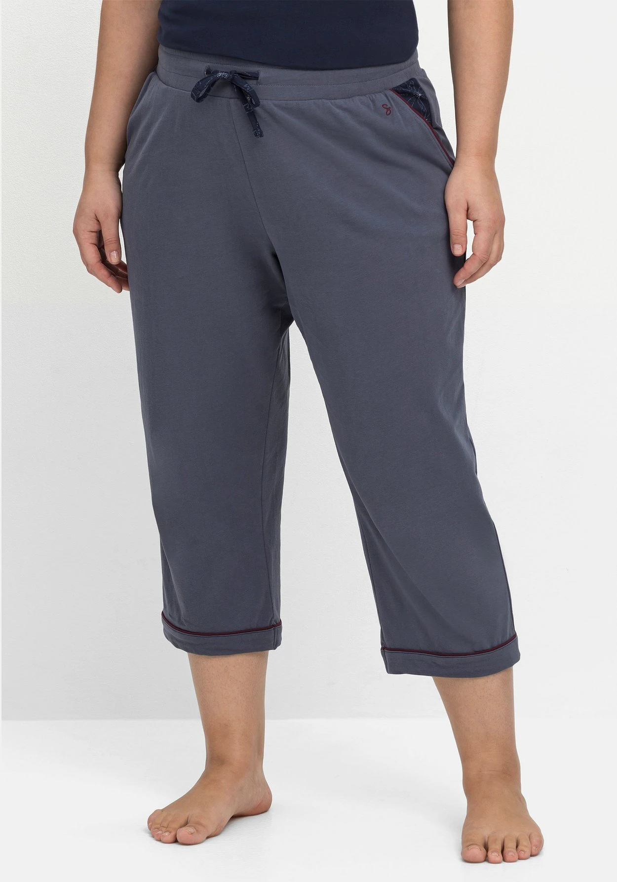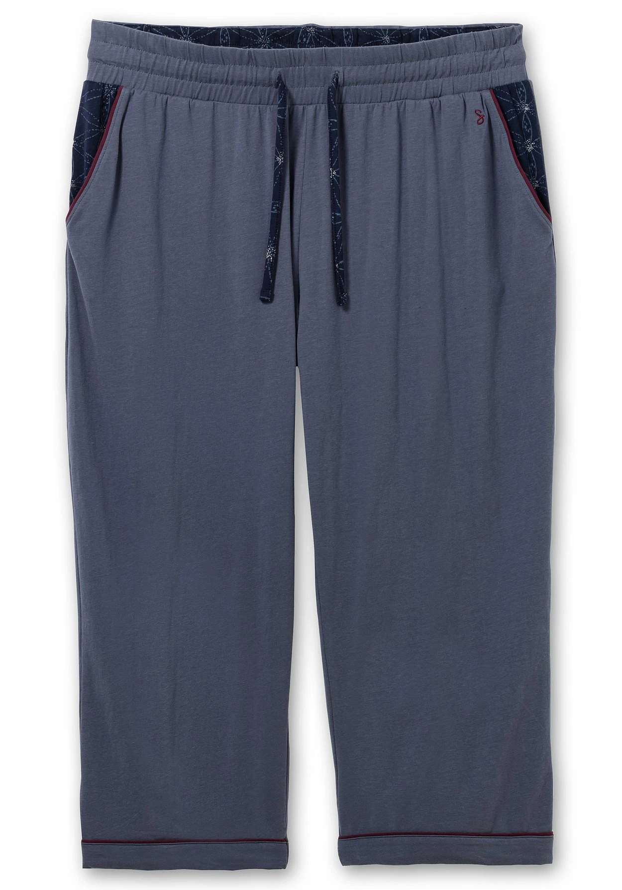 Schlafhose in 3/4-Länge. Kontrastfarbene und gemusterte Details setzen bei diesem Style dekorative Akzente. Durch den elastischen Bund mit Bindebändchen trägt sich die Hose superbequem. Eine kleine Logo-Sticker unter dem Bund verrät gleichzeitig die Herkunft des Lieblingsstücks. Praktisch ergänzt wird die Schlafanzughose durch zwei seitliche Eingrifftaschen. Unser Tipp: Dank des Mix & Match-Charakters lässt sich die Hose perfekt mit Oberteilen aus der sheego Nachtwäsche-Kollektion kombinieren.