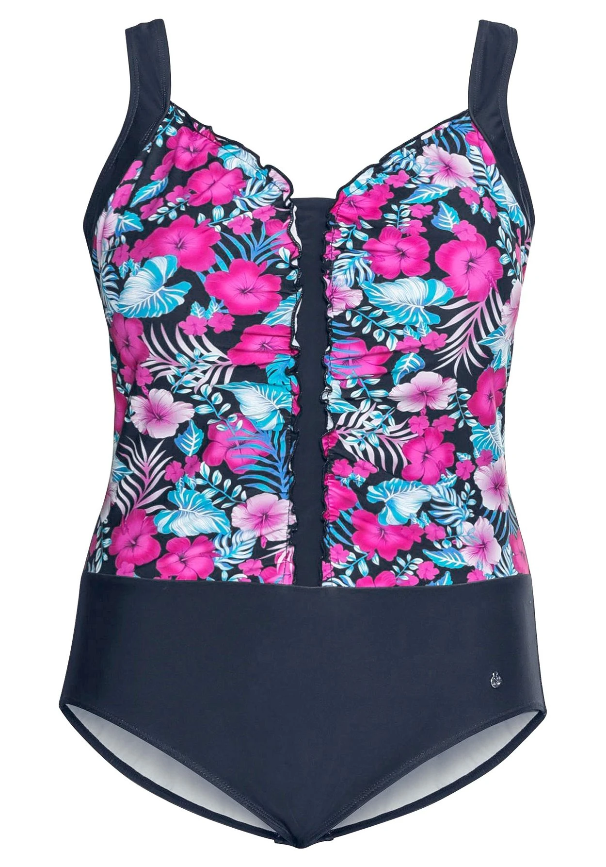 Badeanzug mit Shaping-Effekt. Der florale Druck wird durch die Rüschenkante feminin aufgewertet. Wattierte Softcups, ein Unterbrustgummi sowie die breiten Träger sorgen für hohen Tragekomfort und optimalen Halt.
