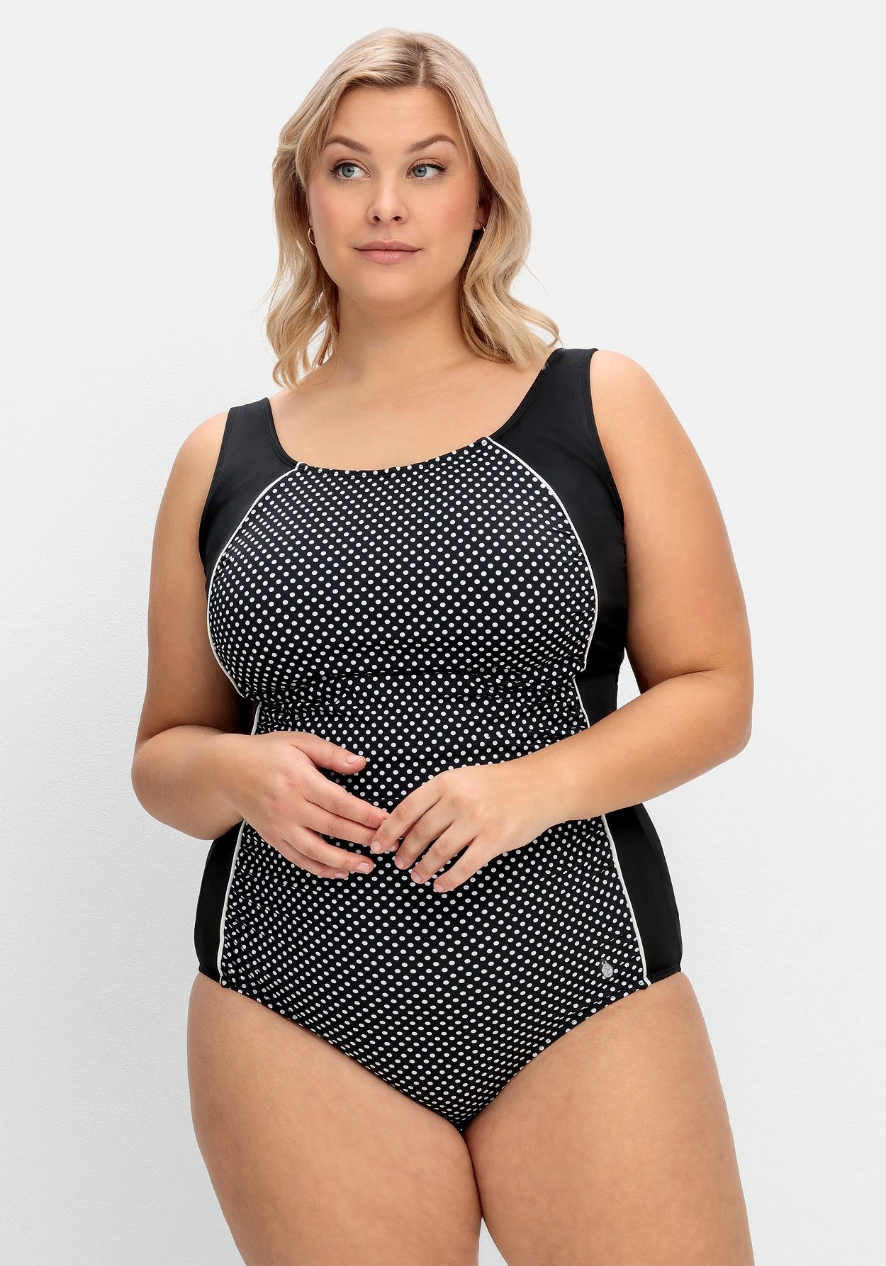 In figurnaher Form. Wattierte Softcups, ein Unterbrustgummi und verstellbare Träger sorgen für Tragekomfort. Der vorn eingearbeitete Powernetz-Einsatz formt schmeichelnd die Bauchpartie.