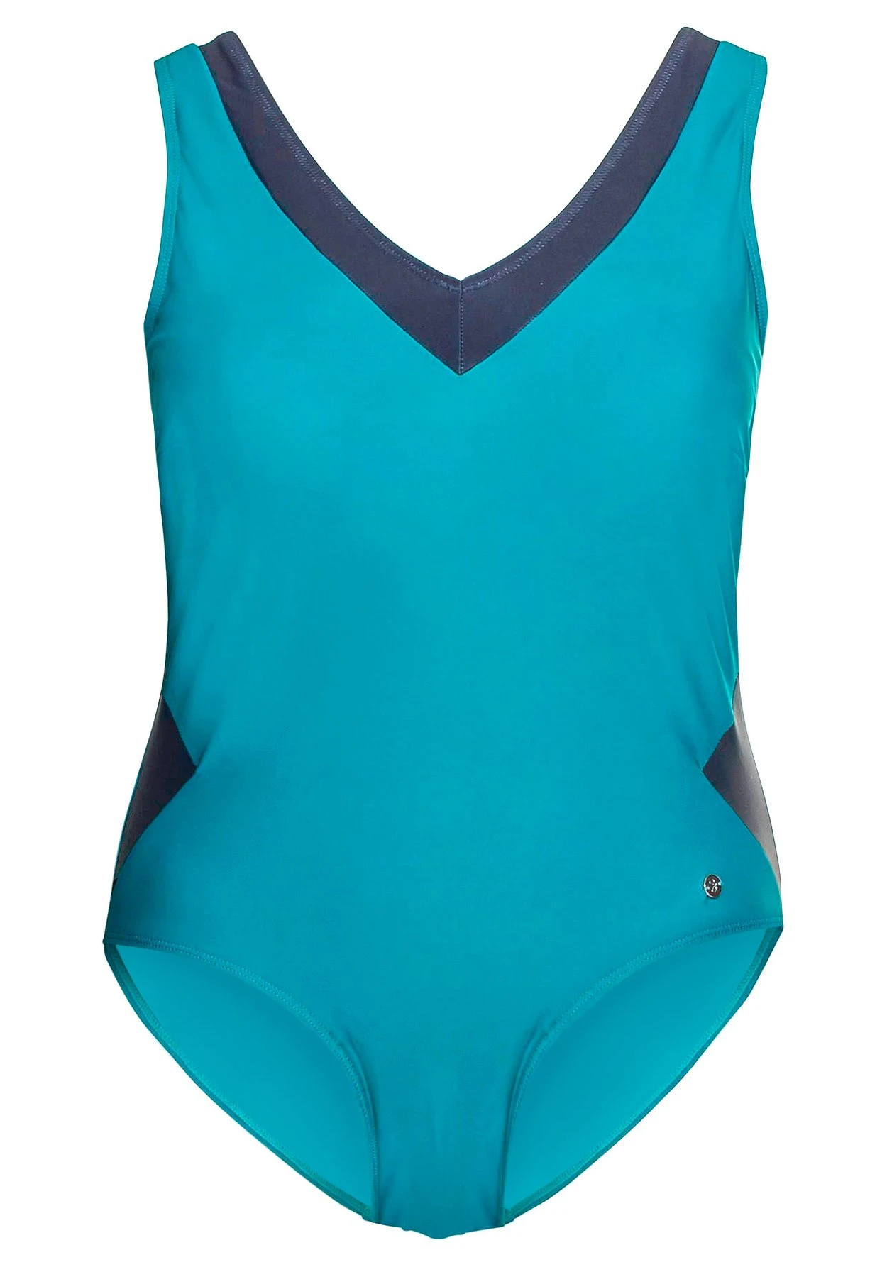 Badeanzug mit Shaping-Effekt. Die kontrastfarbenen Einsätze am Ausschnitt und an den Seiten geben dem Style eine sportive Note. Wattierte Softcups, ein Unterbrustgummi sowie die breiten Träger sorgen für hohen Tragekomfort und optimalen Halt.