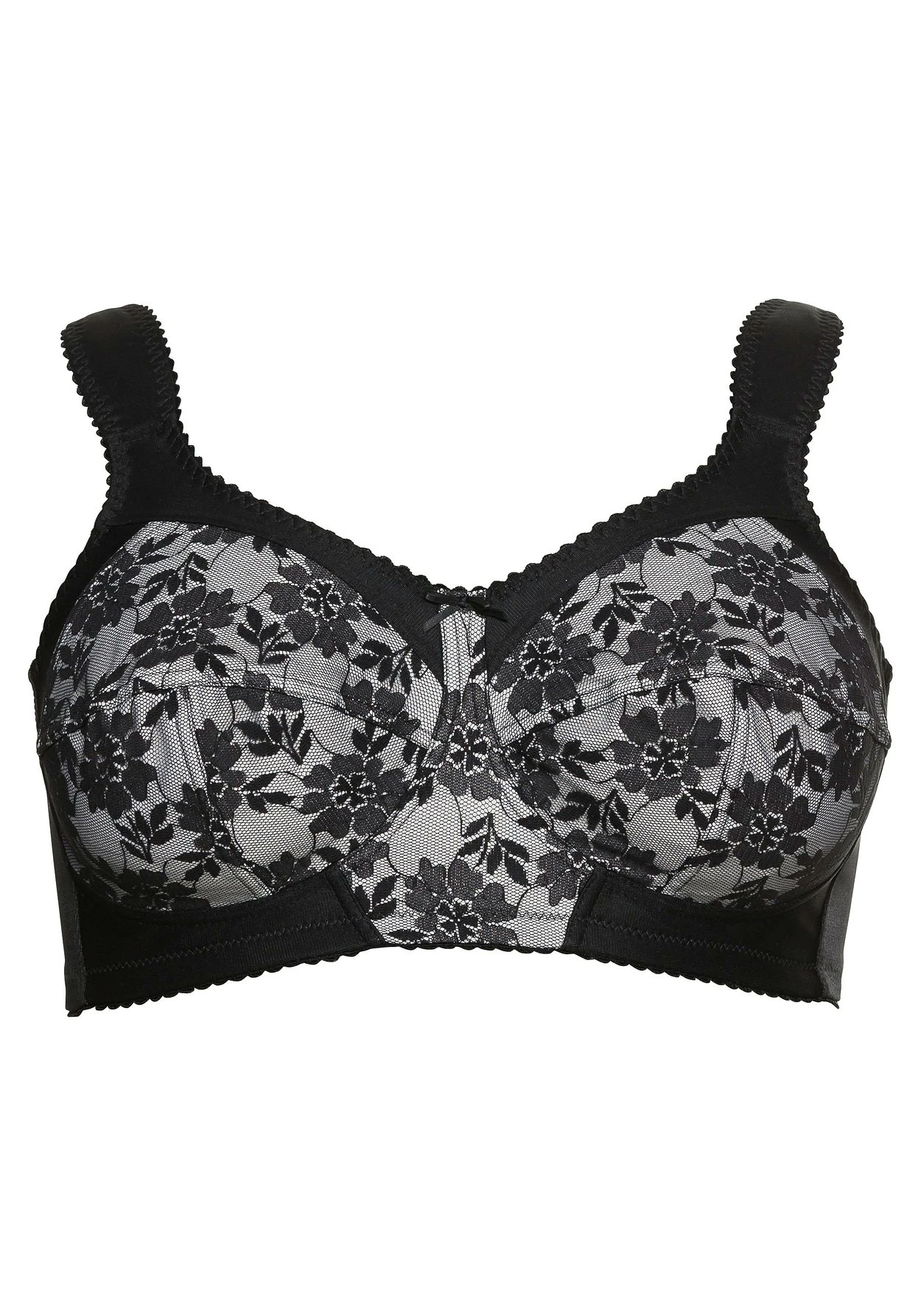 BH mit dreigeteilten Cups und kontrastfarbenem Futter. Die breiten, gefütterten Träger lassen sich bequem in der Länge verstellen. Das breite Unterbrustband und die innenliegenden Seitenstützen sorgen für optimalen Halt. Der BH wird im Rücken geschlossen.
