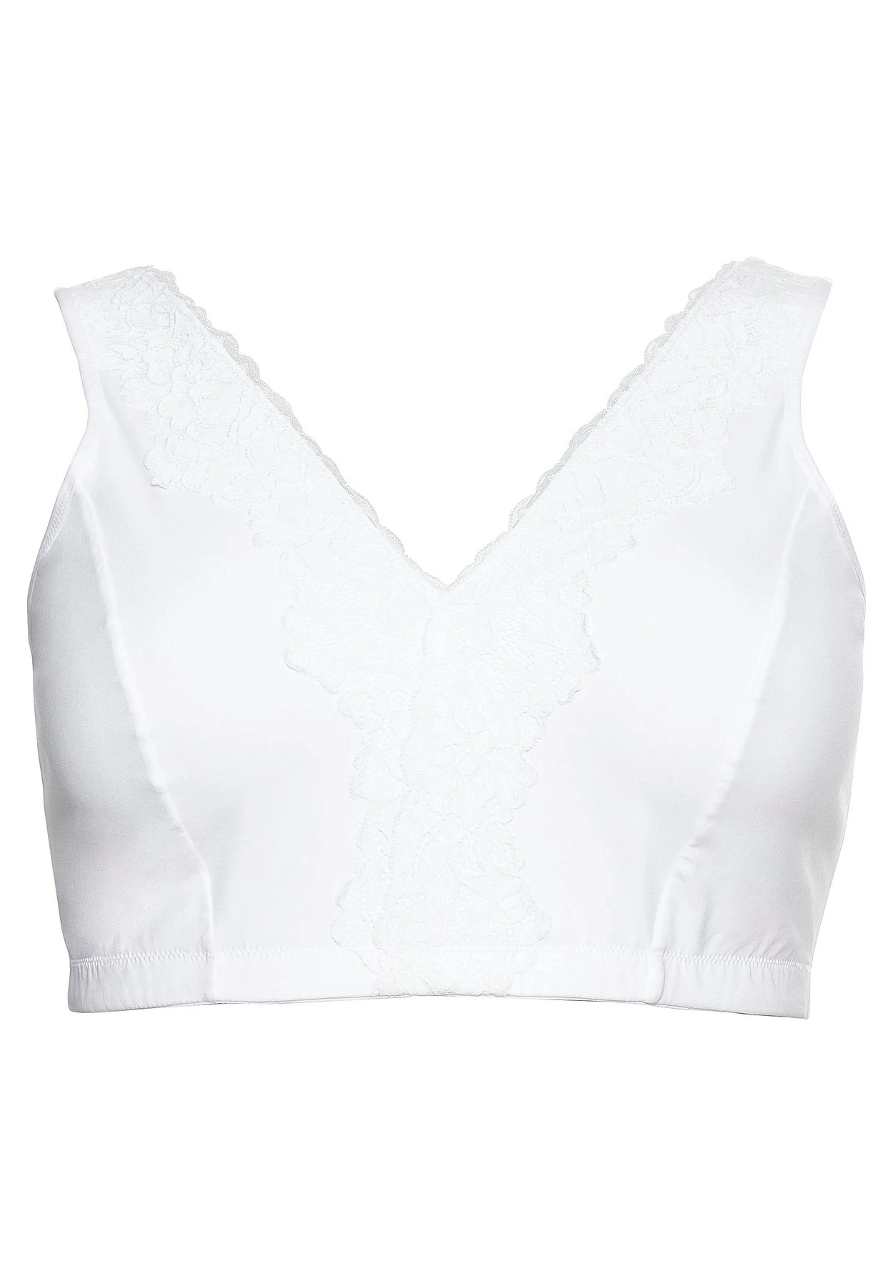 BH ohne Bügel in verschlussloser Bustier-Form. Für eine romantische Note sorgt die feminine Spitzenborte an Ausschnitt und Trägern. Einen optimalen Sitz versprechen die breiten Träger sowie der eingearbeitete Unterbrustgummi. Unser Tipp: Tragen Sie den BH unter einem tiefen V-Ausschnitt – so blitzt die Spitze dezent heraus.