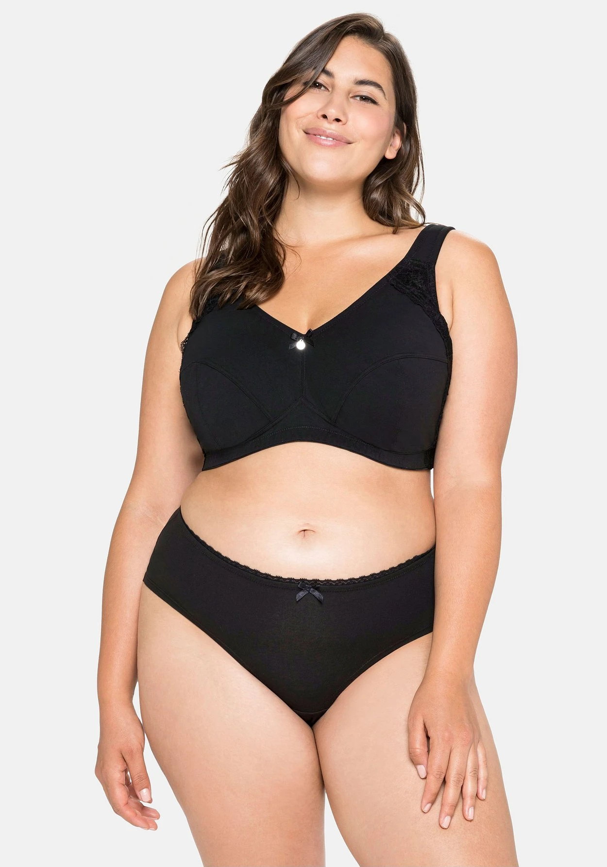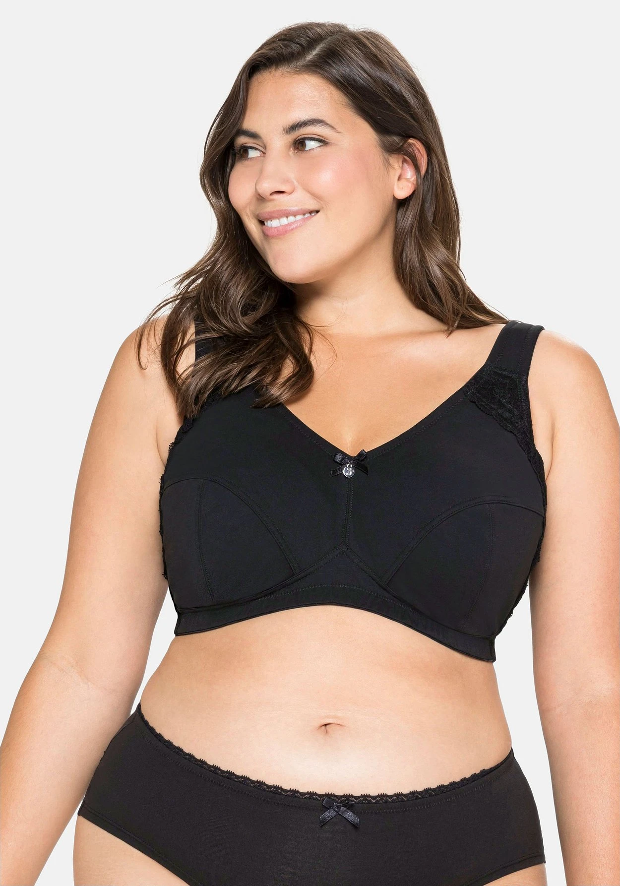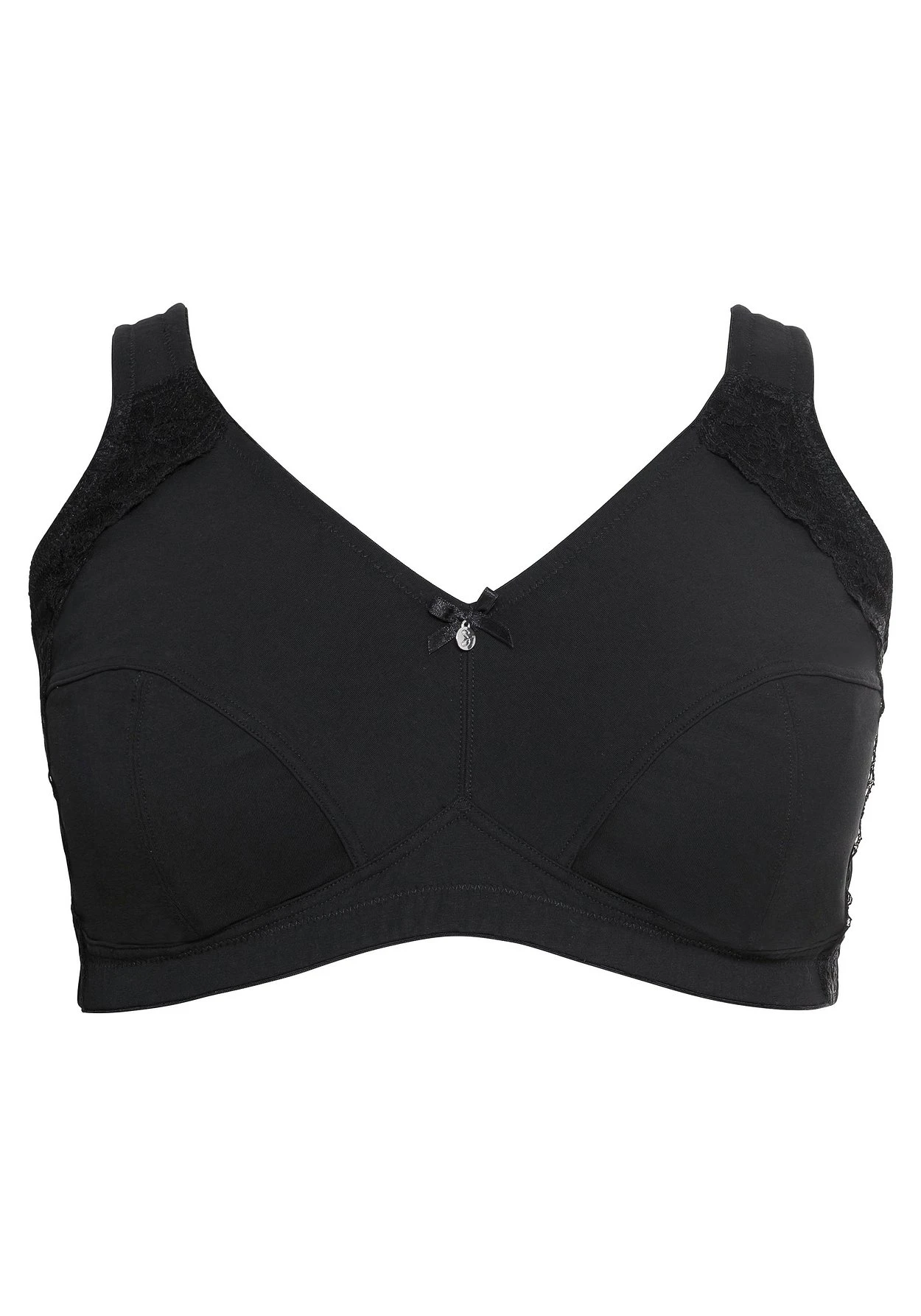 BH in bügelloser Form. Für eine romantische Note sorgt der seitliche Spitzenbesatz. Besonders tragefreundlich sind die elastischen, längenverstellbaren Träger gearbeitet, die dank der Wattierung nicht einschneiden. Für einen optimalen Sitz sorgt der eingearbeitete Unterbrustgummi, auch die abdeckende Schnittform gibt zuverlässigen Halt und Komfort. Mit weitenverstellbarem Rückenverschluss.