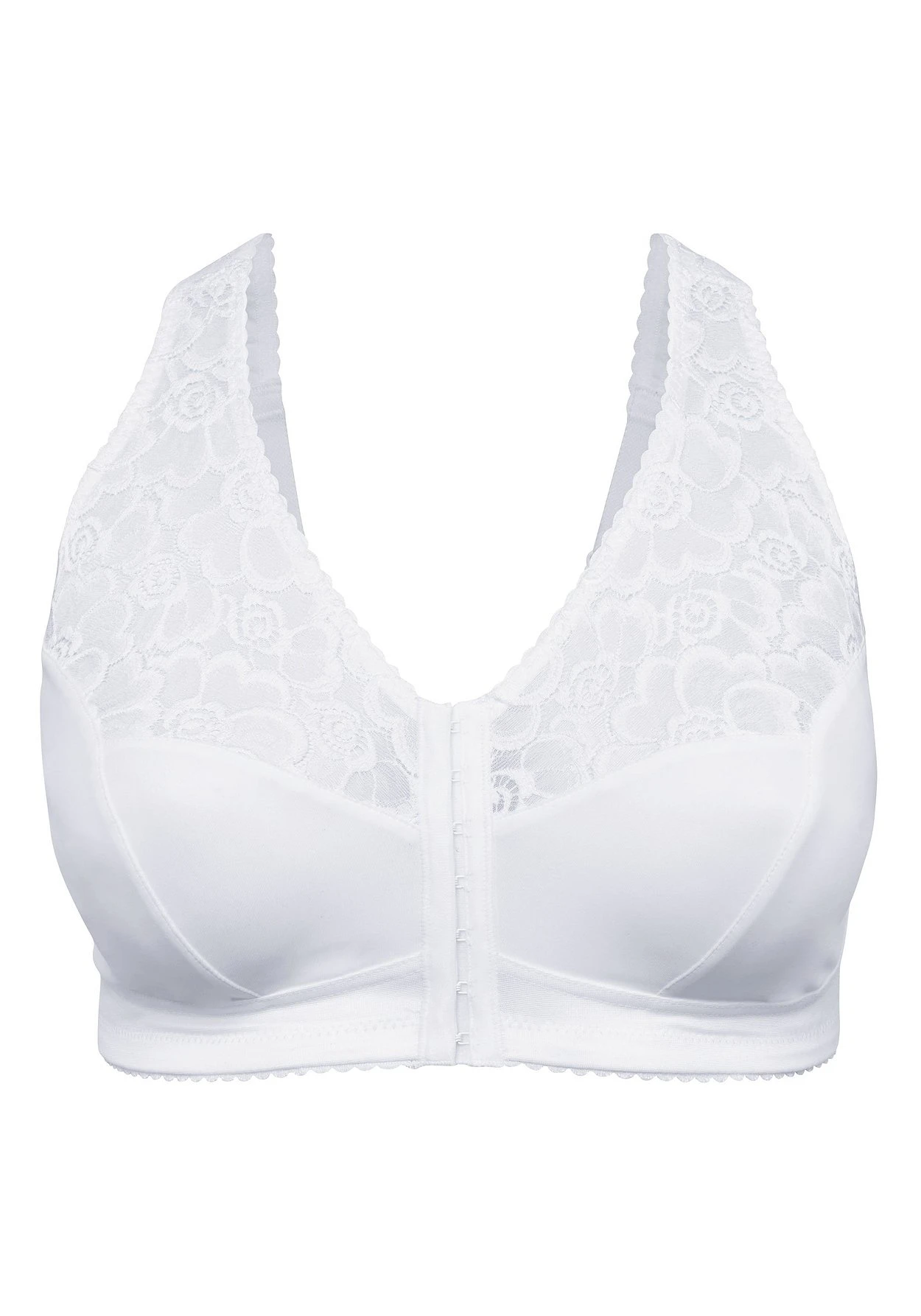 BH mit praktischem Vorderverschluss. Die Obercups und die wattierten Träger sind aus verführerischer Spitze gearbeitet. Für noch mehr Tragekomfort und zur Entlastung der Schultern sind die Träger gefüttert und verstellbar. Das innenliegende seitliche Meshfutter sorgt für eine schöne Büste.