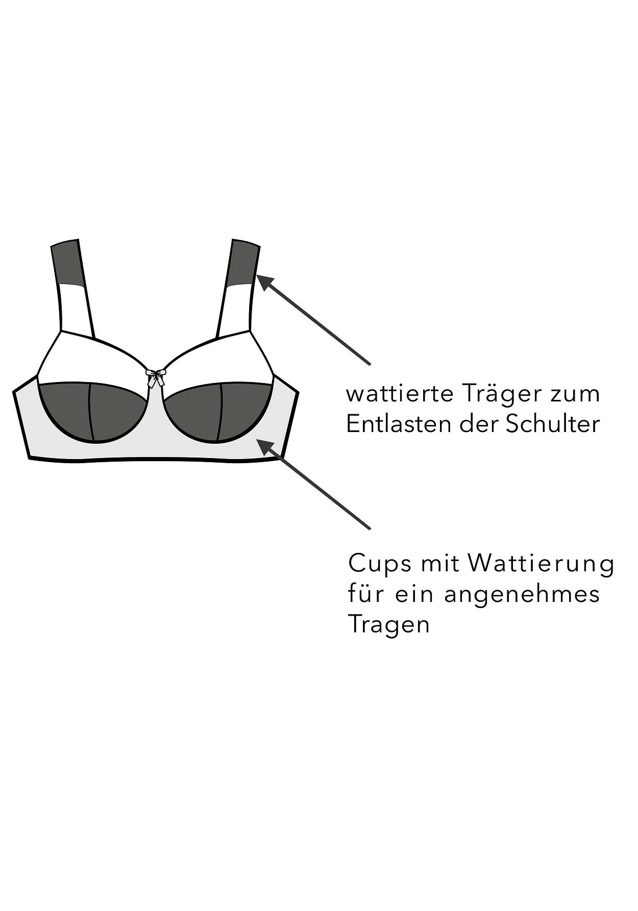 Die bügellose Form sitzt bequem, der Schnitt deckt optimal die Brust ab.