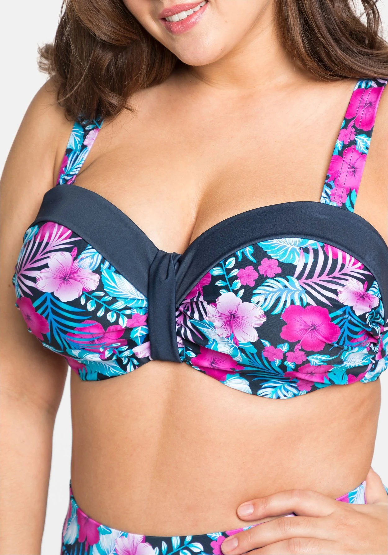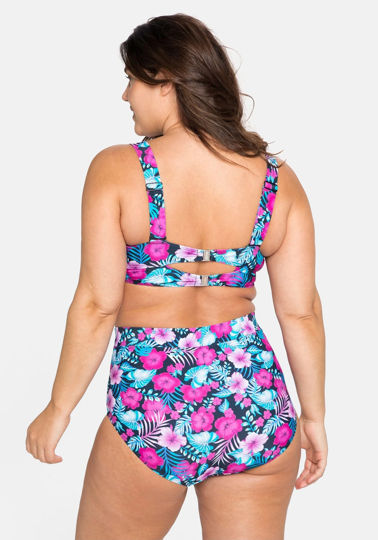 Bikini-Oberteil mit Bügeln und wattierten Soft-Cups. Für sommerlichen Charme sorgt der florale Print, unifarbene Partien setzen dazu moderne Akzente. Breite, verstellbare Träger und eine Doppelschließe im Rücken geben dem Style seinen optimalen Sitz. Dank des Mix & Match-Charakters lässt sich das Oberteil perfekt mit der passenden Bikinihose aus der sheego Badekollektion kombinieren.