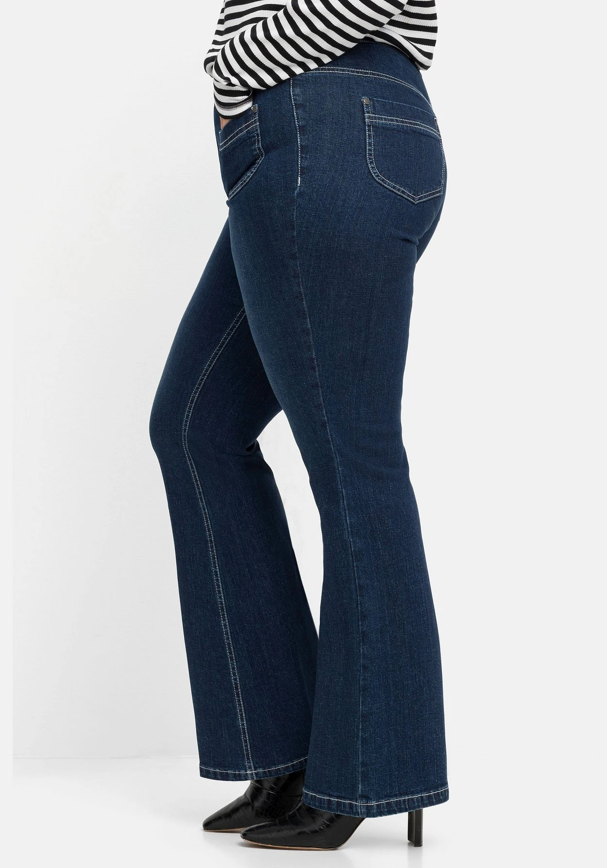 Die nach unten hin leicht ausgestellte Bootcut-Beinform ist in High-Heel-Länge geschnitten und schafft feminine Proportionen, die besonders die Beine länger wirken lassen.