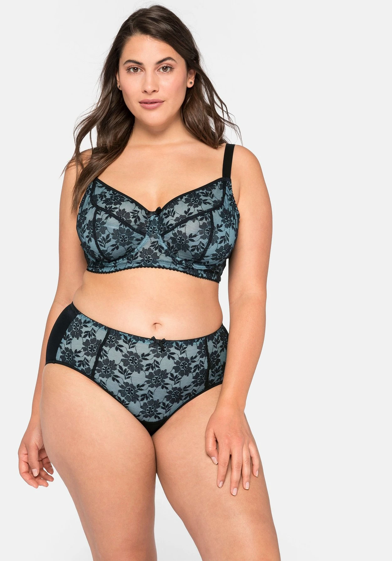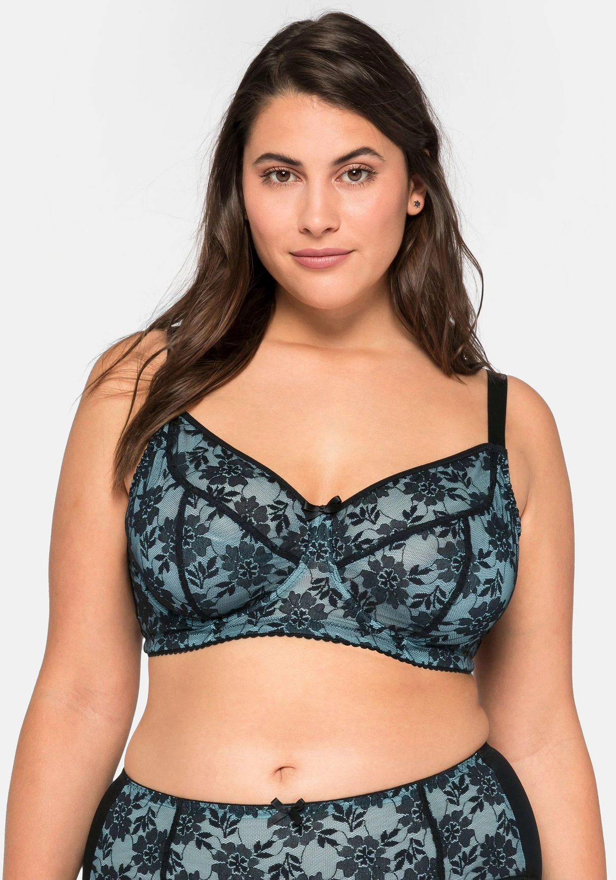 Bügel-BH mit Cups aus floraler Vollspitze. Der unterlegte Mesh setzt dazu einen verführerischen Kontrast, die Schleife in der Mitte ziert den BH zusätzlich. Bügel sowie eingenähte seitliche Stützen geben perfekten Halt und sorgen für optimalen Tragekomfort. Besonders praktisch sind die verstellbaren Träger und der verstellbare Rückenverschluss.