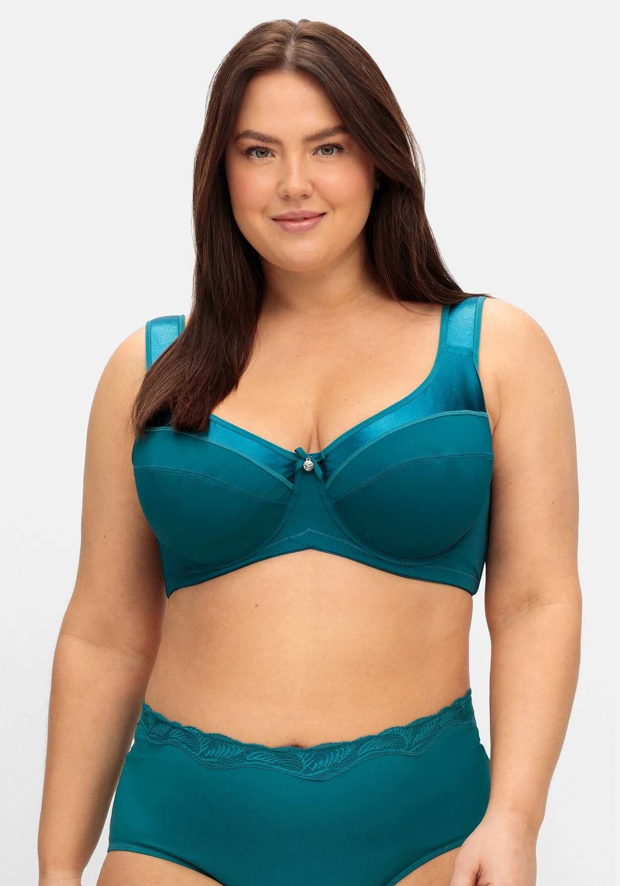 BH mit formgebenden Bügeln und Zierschleife zwischen den Cups. Das Design zeigt sich in schlichter Eleganz und überzeugt mit hohem Tragekomfort: Die seitlichen Stützen geben guten Halt. Die breiten, leicht gefütterten und verstellbaren Träger tragen sich sehr angenehm, ohne einzuschneiden. Auch der verstellbare Rückenverschluss ist weich wattiert.