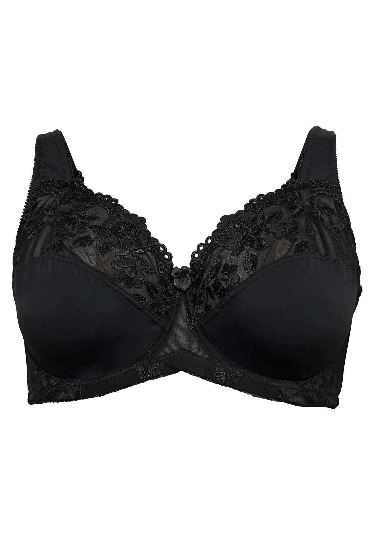 Dieser Bügel-BH wird dank der besonderen Kombination aus verschiedenen, leicht transparenten Spitzen zum verspielten Hingucker. Seitenstützen und breite, leicht gefütterte Träger sorgen dabei für zuverlässigen Halt und optimalen Tragekomfort. Rückenverschluss und Träger sind verstellbar.
