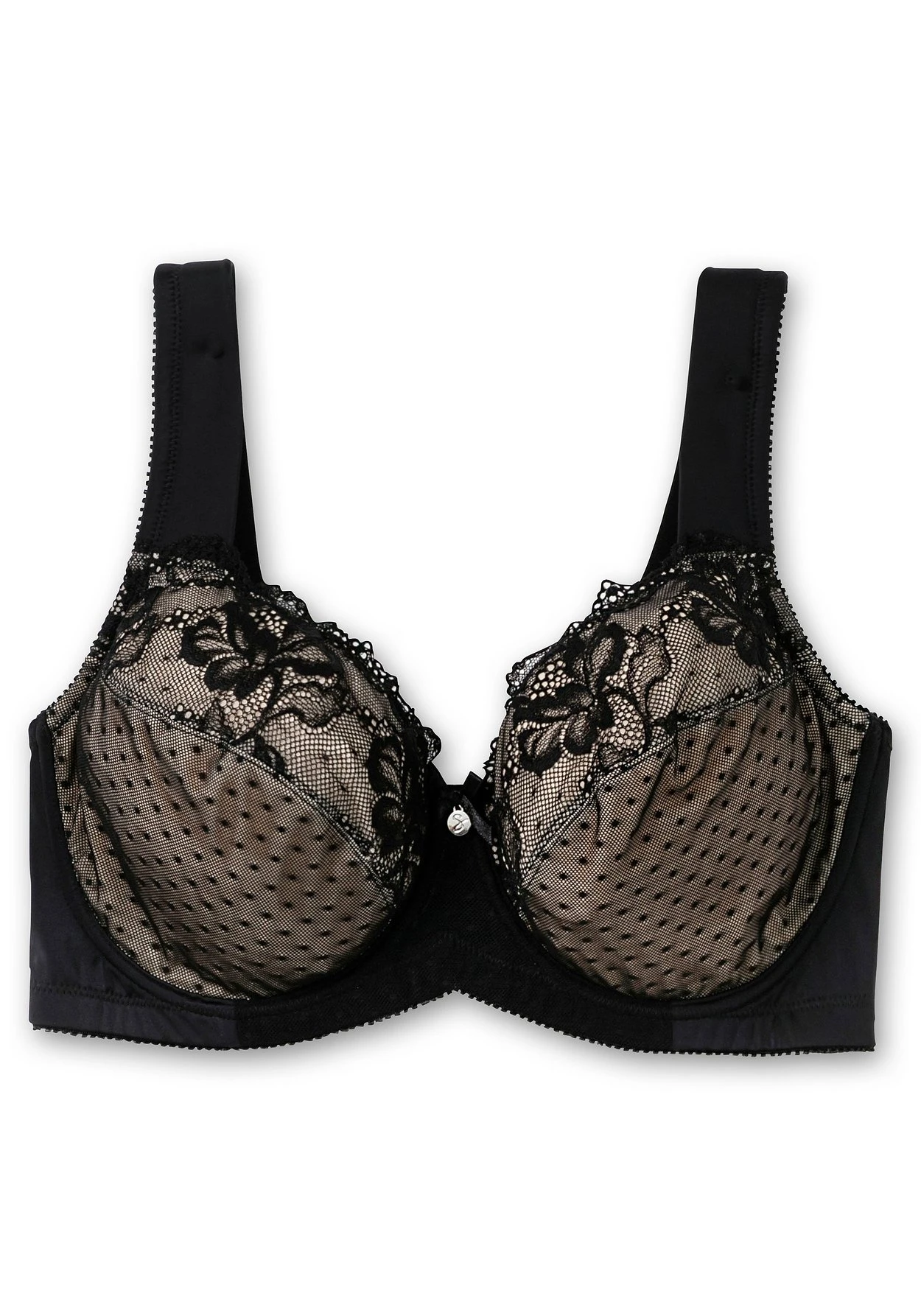 Bügel-BH mit dekorativer Spitze. Der unterlegte Mesh setzt dazu einen verführerischen Kontrast, die Schleife und das Metalllabel schmücken den Steg zwischen den Cups. Bügel sowie eingenähte seitliche Stützen geben perfekten Halt und sorgen für optimalen Tragekomfort. Durch den hohen Mittelsteg wird die Brust gut abgedeckt und stützt zusätzlich die Brust. Auch die breiten, elastischen Träger schneiden nicht ein.