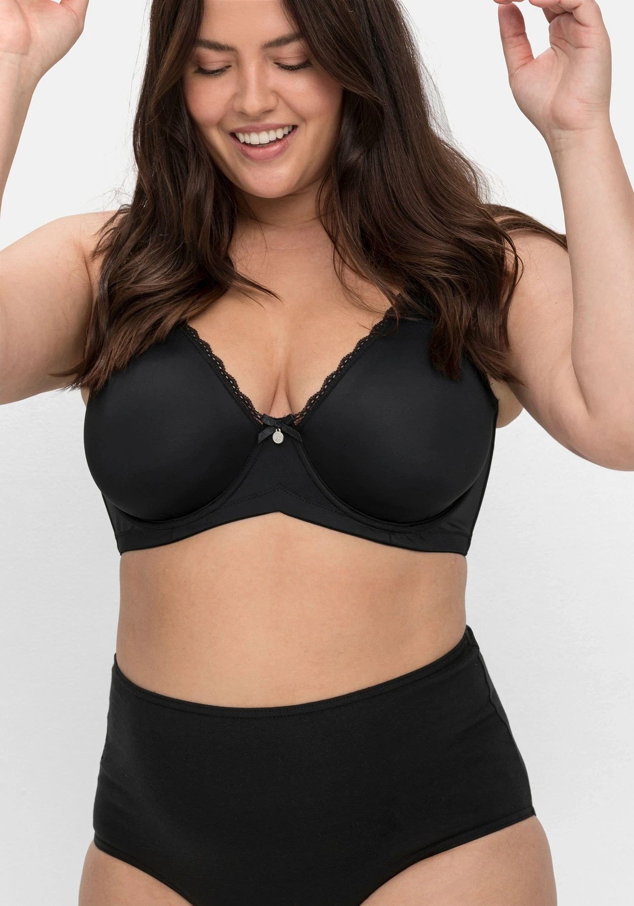 In sehr bequemer, brustabdeckender Schnittform mit stützendem Bügel. Die verstellbaren Träger und Rückenverschluss sorgen für Passgenauigkeit.