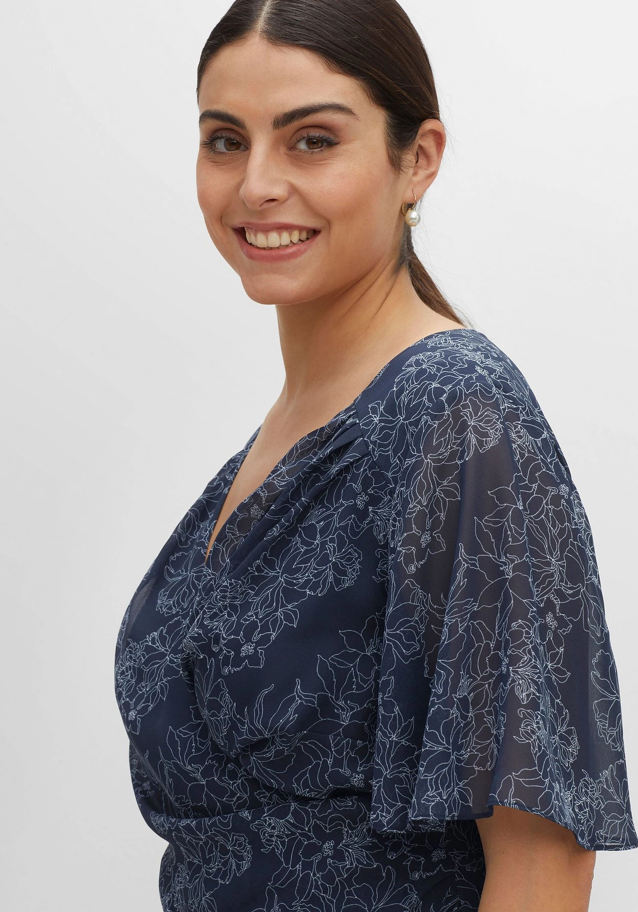 Die edle Transparenz des Chiffons wirkt sehr elegant, das Unterkleid macht den Look blickdicht.