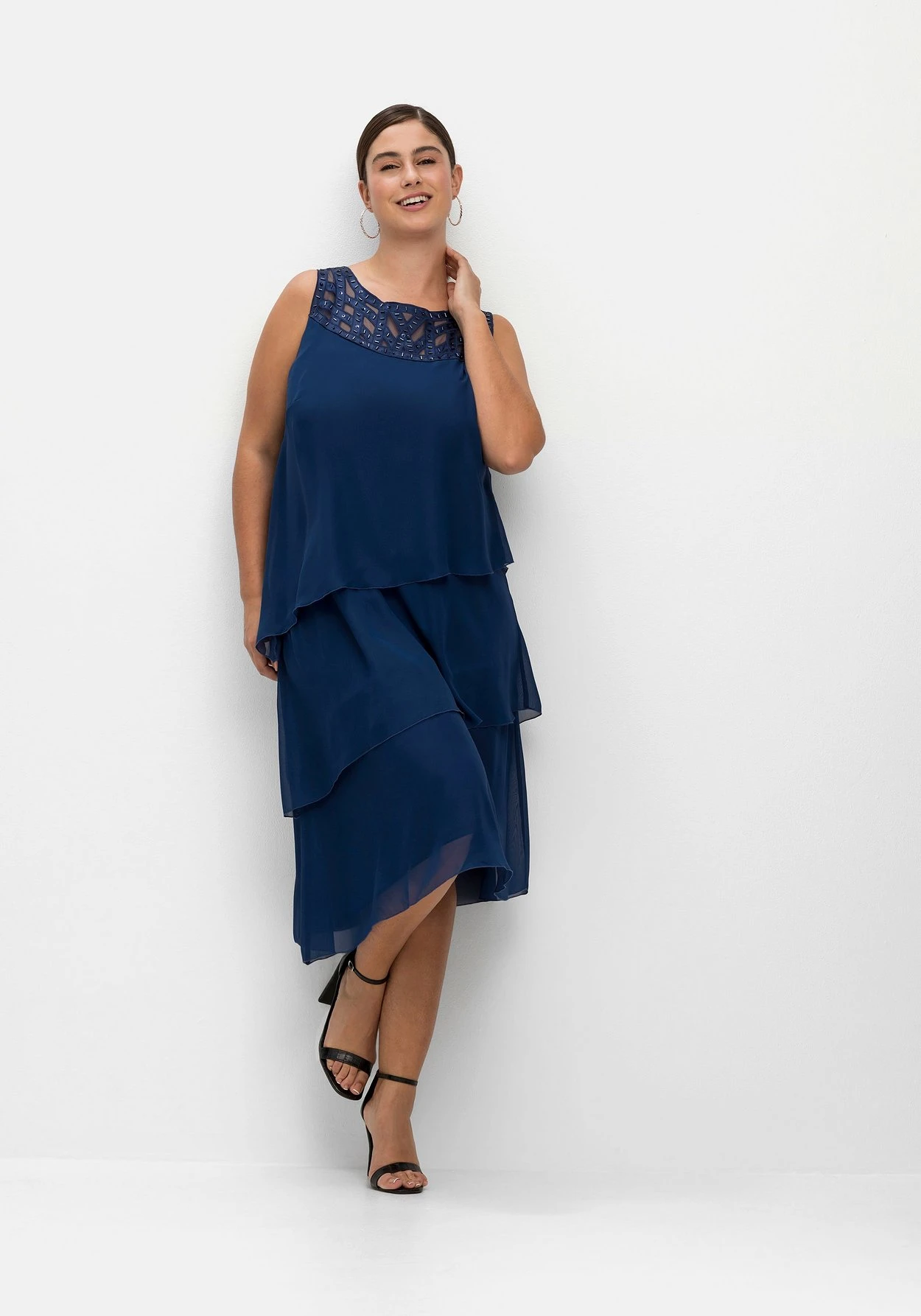 Der transparente, leicht strukturierte Chiffon fällt locker fließend über das Unterkleid. Dazu ist das Unterkleid aus einem pflegeleichten Interlock-Futter gearbeitet und absolut blickdicht.