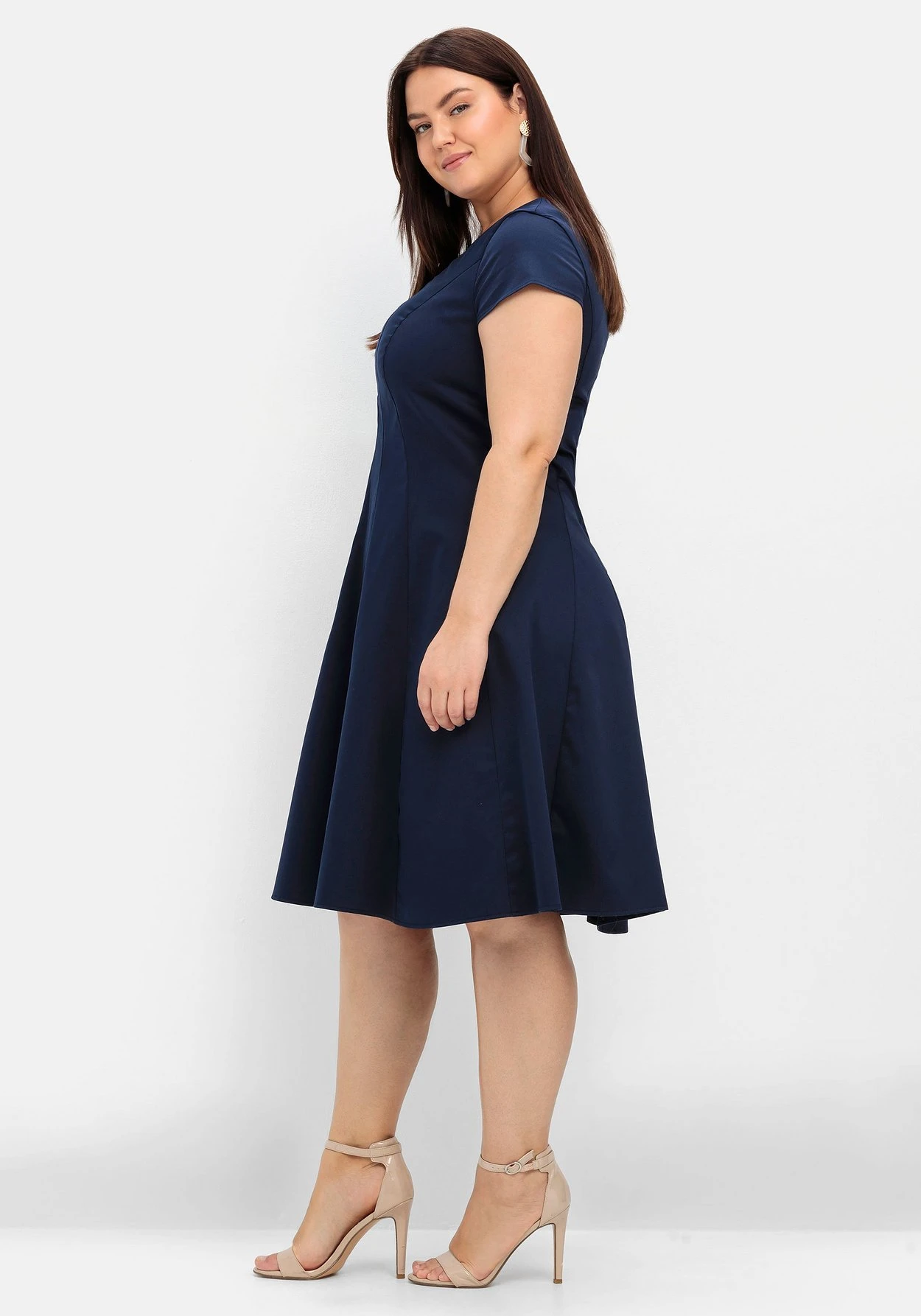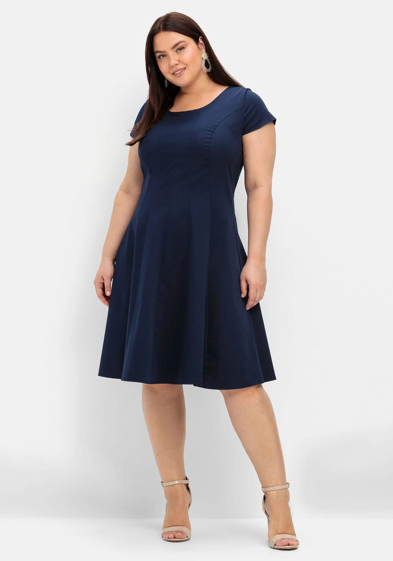 Oben anliegend und nach unten hin weit ausgestellt: Die Bahnenform schmeichelt der Figur.