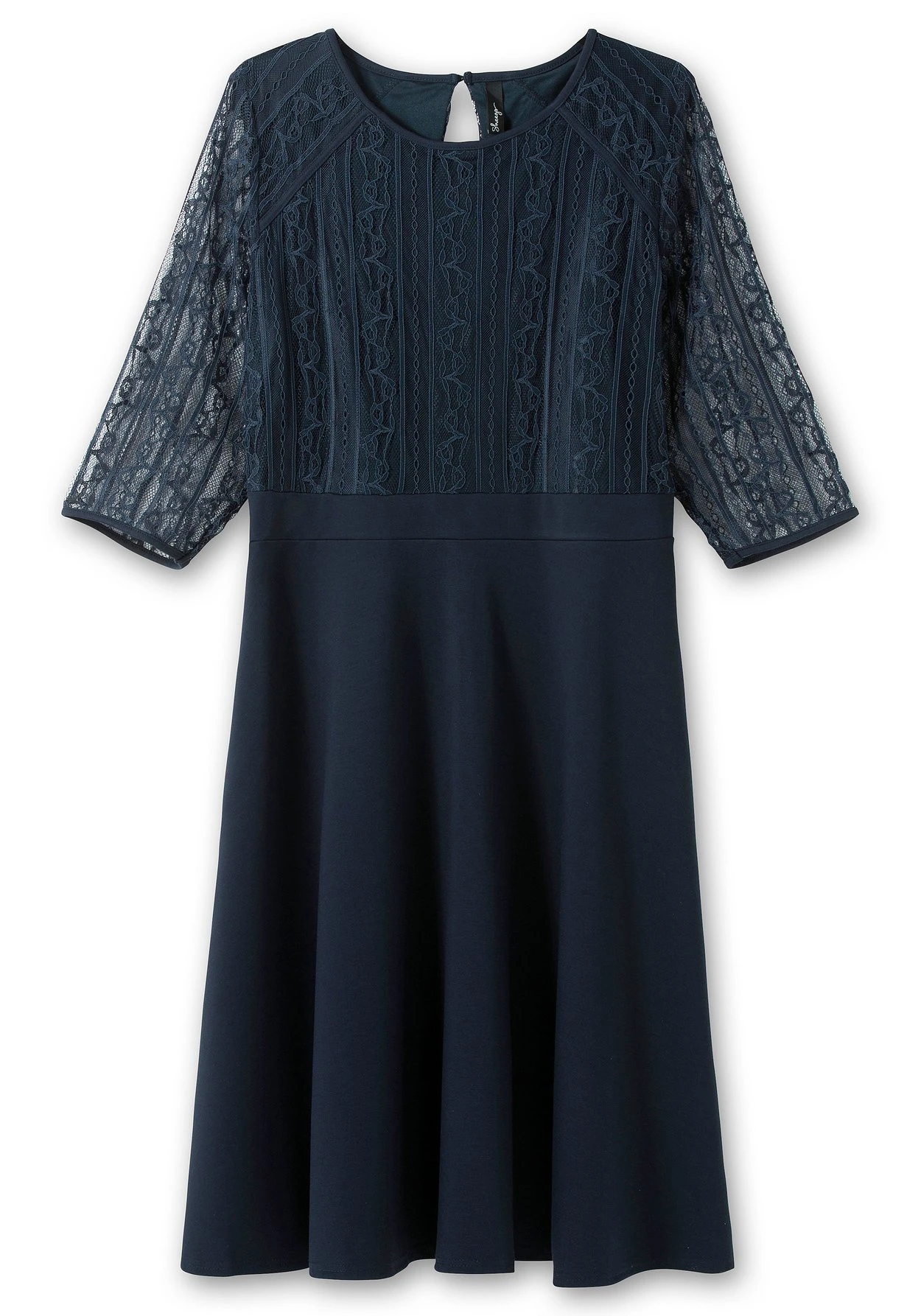 Cocktailkleid mit leicht ausgestelltem Rock. Für unverwechselbare Eleganz sorgt hier die florale Spitze. Sie macht die transparent gehaltenen 3/4-Ärmel zum Hingucker und ziert dezent das blickdichte Oberteil. Ein Taillenband betont gekonnt die Körpermitte, der nahtfeine Reißverschluss sowie der Schlüssellochausschnitt hinten ergänzen den festlichen Style.