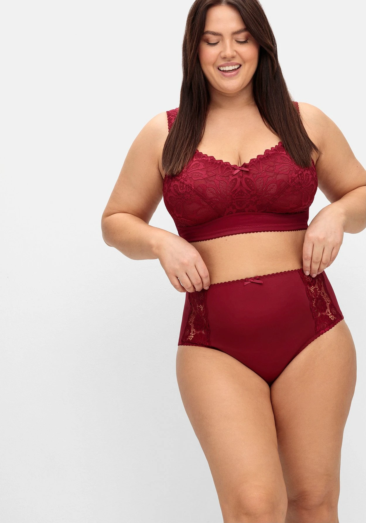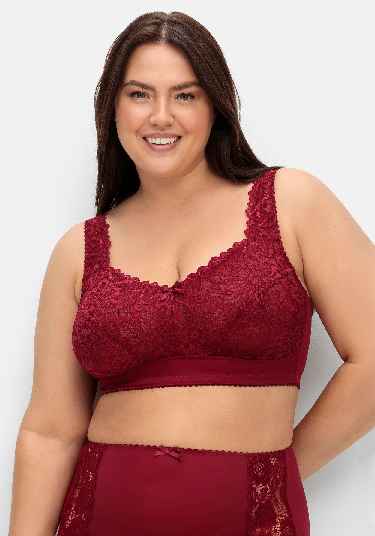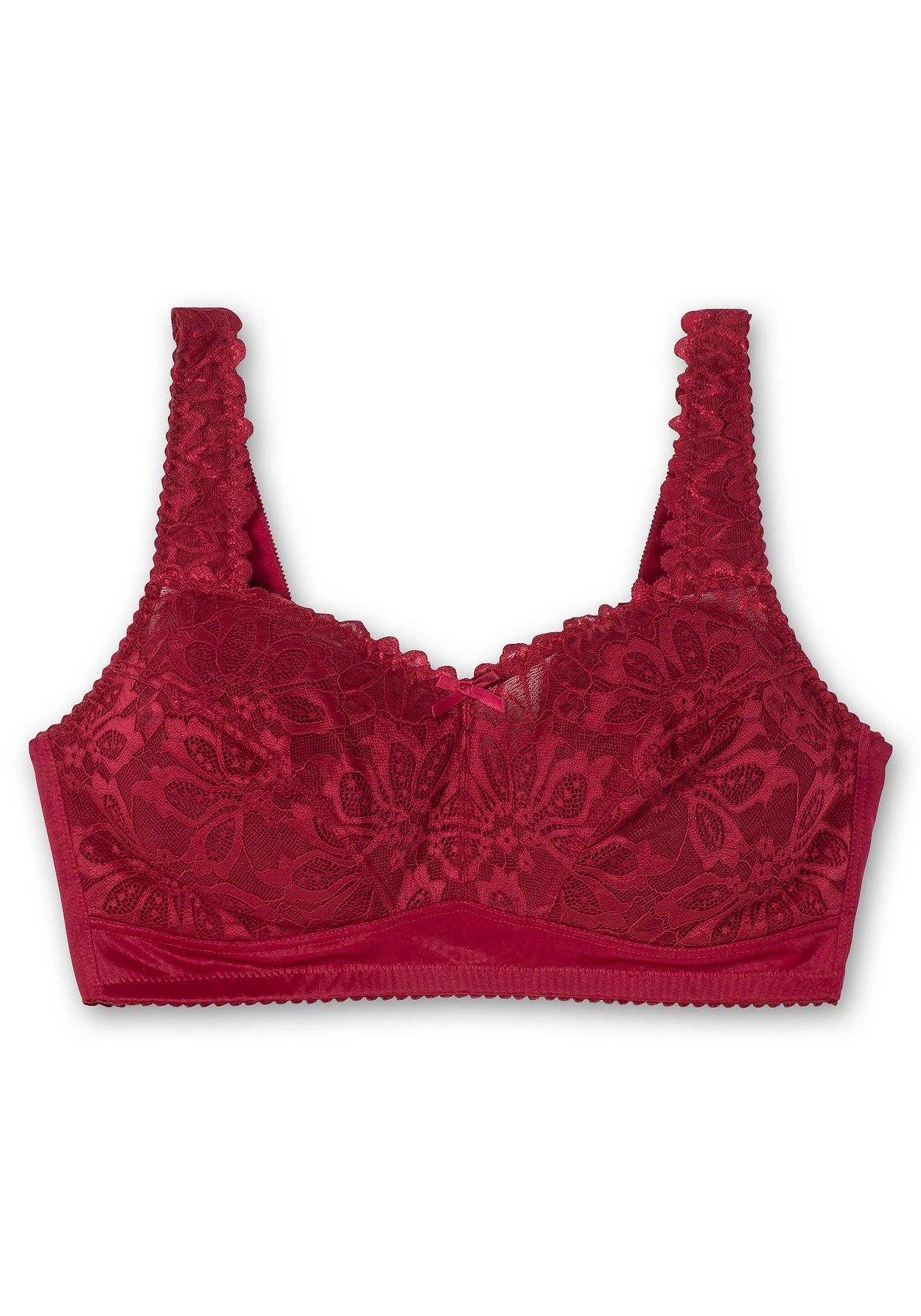 Entlastungs-BH ohne Bügel. Die unterschiedlichen Spitzen-Designs geben dem BH seine elegante Optik. Dazu überzeugt der bügellose BH mit hohem Tragekomfort: Die Cups decken die Brust komplett ab, die breiten, leicht gefütterten Träger schneiden nicht ein. Zusätzlich stützt und entlastet das breite Unterbrustgummi.