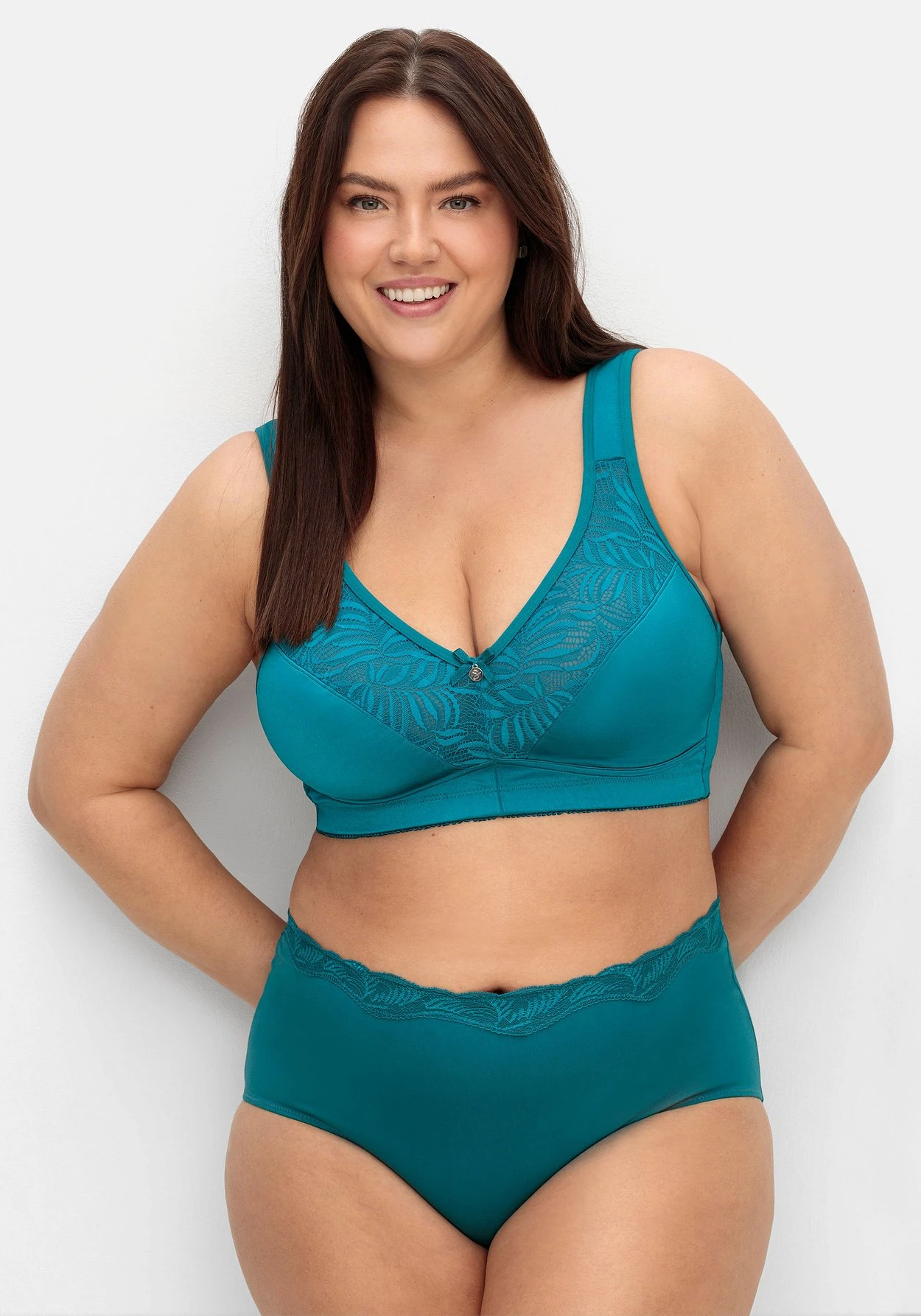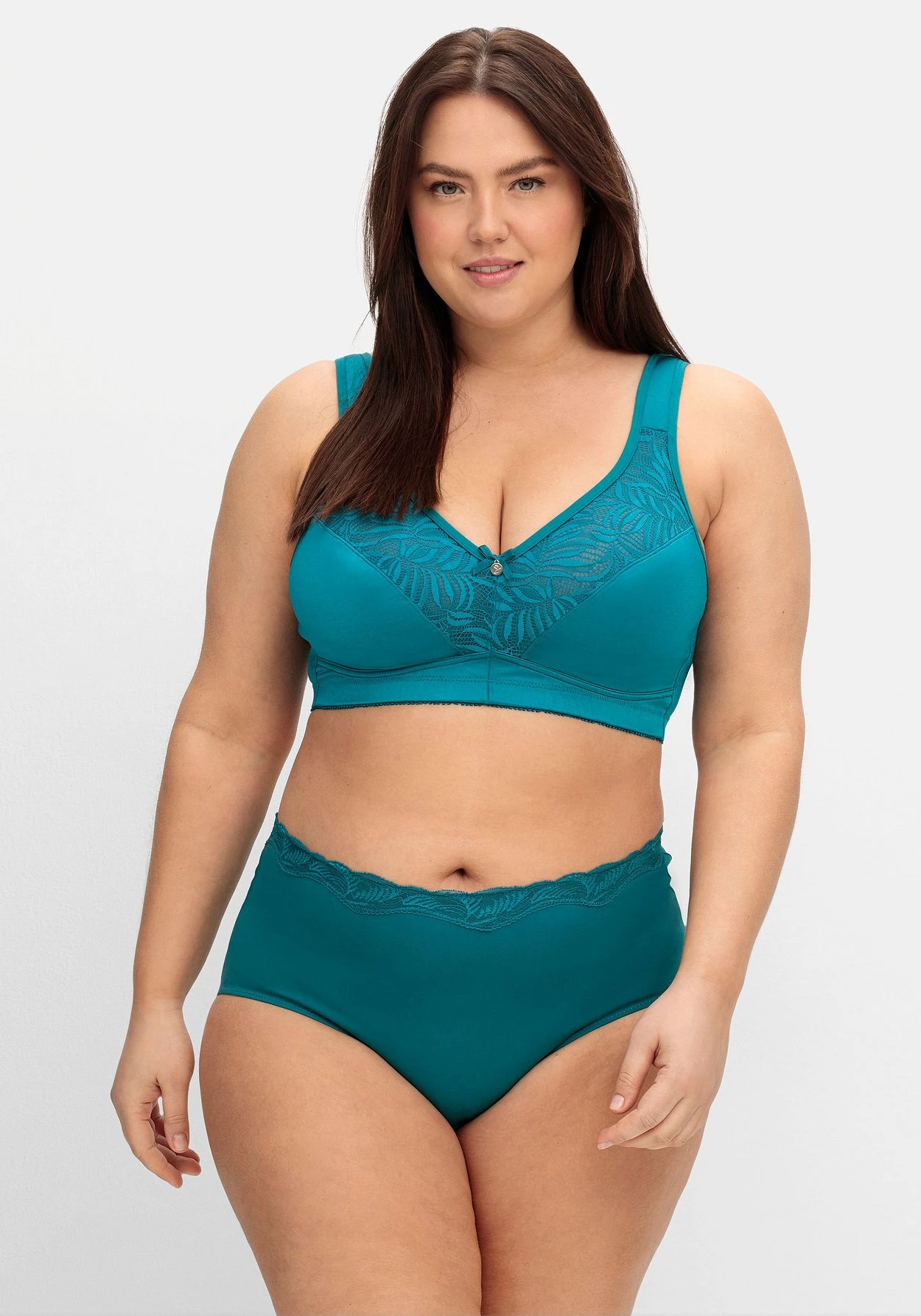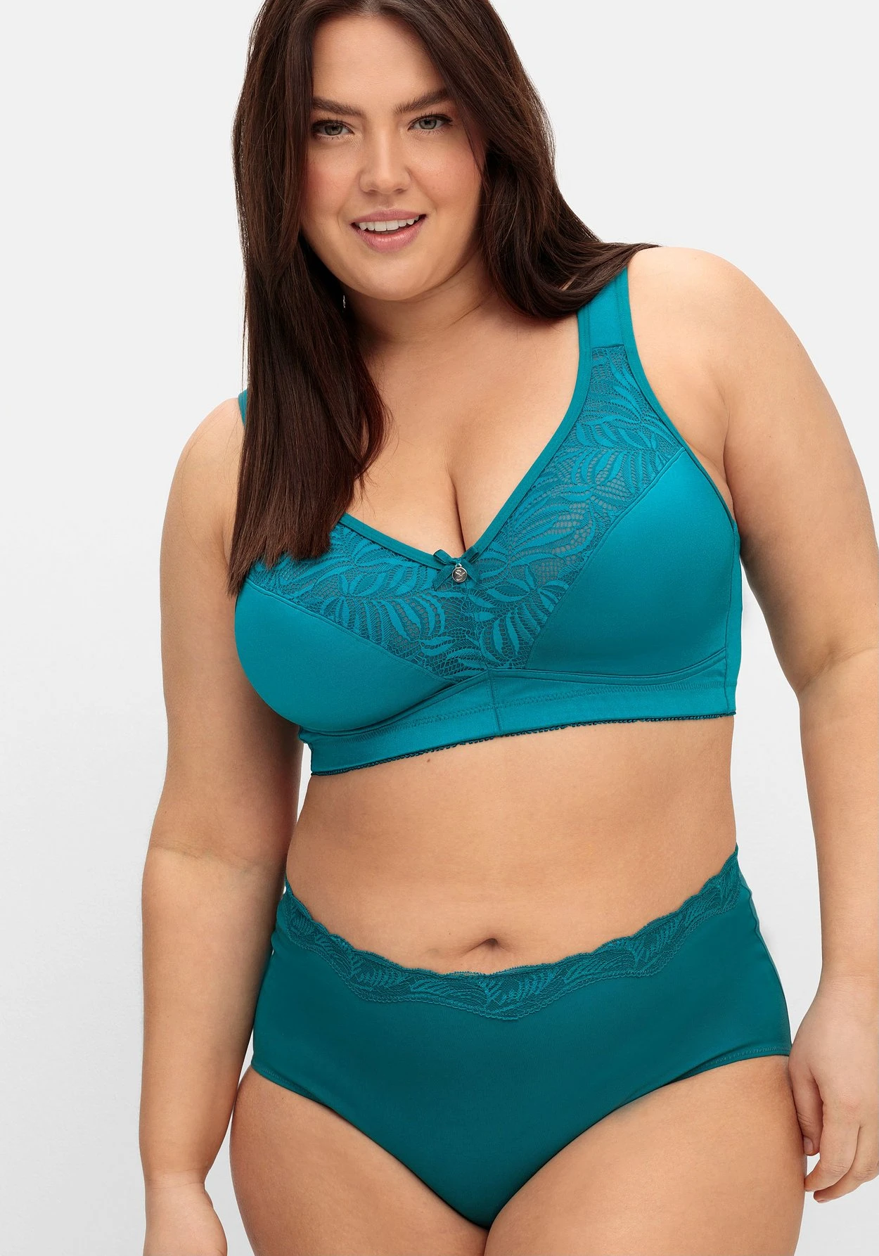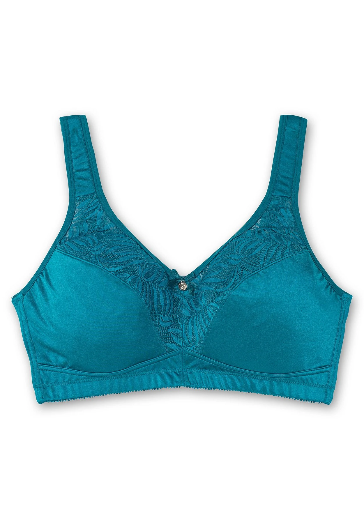 Entlastungs-BH in bügelloser Form. Dekorative Akzente setzt die leicht transparente Spitze oberhalb der Cups, eine Satin-Zierschleife mit Metalllabel am Ausschnitt ergänzt feminin den Style. Das breite Unterbrustband ermöglicht einen komfortablen Halt. Dazu lassen sich die breiten, leicht gefütterten Träger sowie der Rückenverschluss bequem in der Länge regulieren.