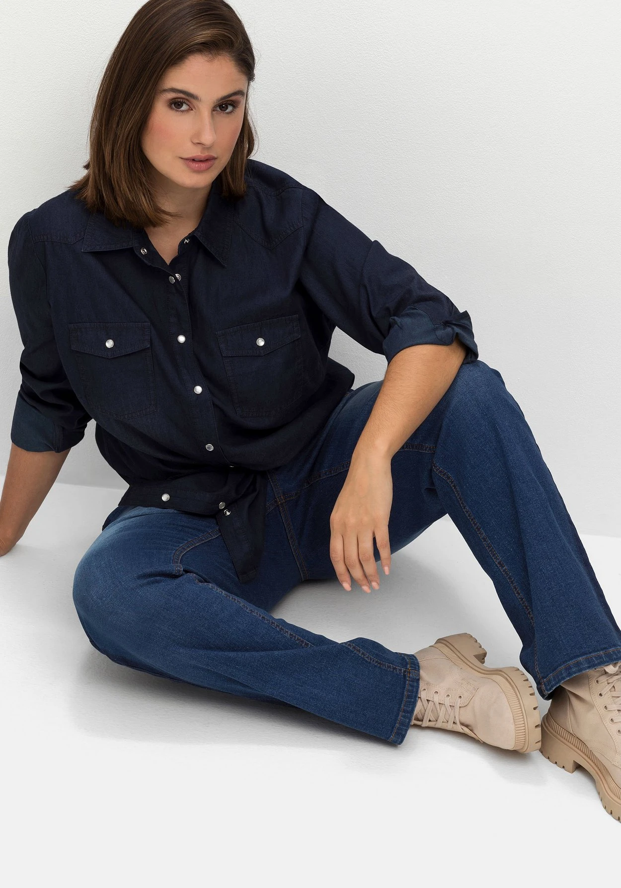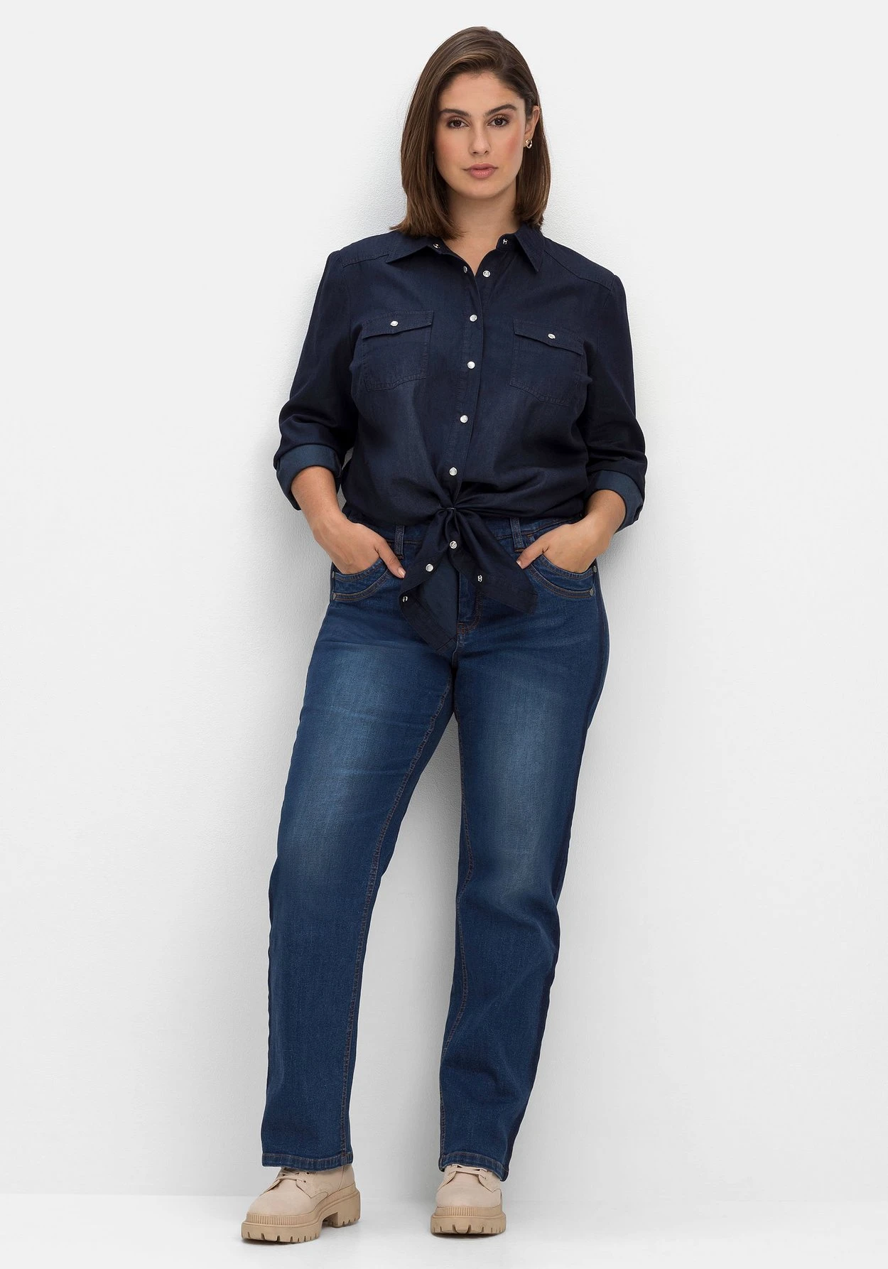 Die elastische Denimqualität trägt sich durch den hohen Baumwollanteil besonders angenehm. Mit dem Kauf unterstützt du außerdem die Arbeit von „Cotton made in Africa“. Die Initiative leistet Hilfe zur Selbsthilfe durch Handel und will so die Lebensbedingungen afrikanischer Kleinbauern nachhaltig verbessern. sheego cares!