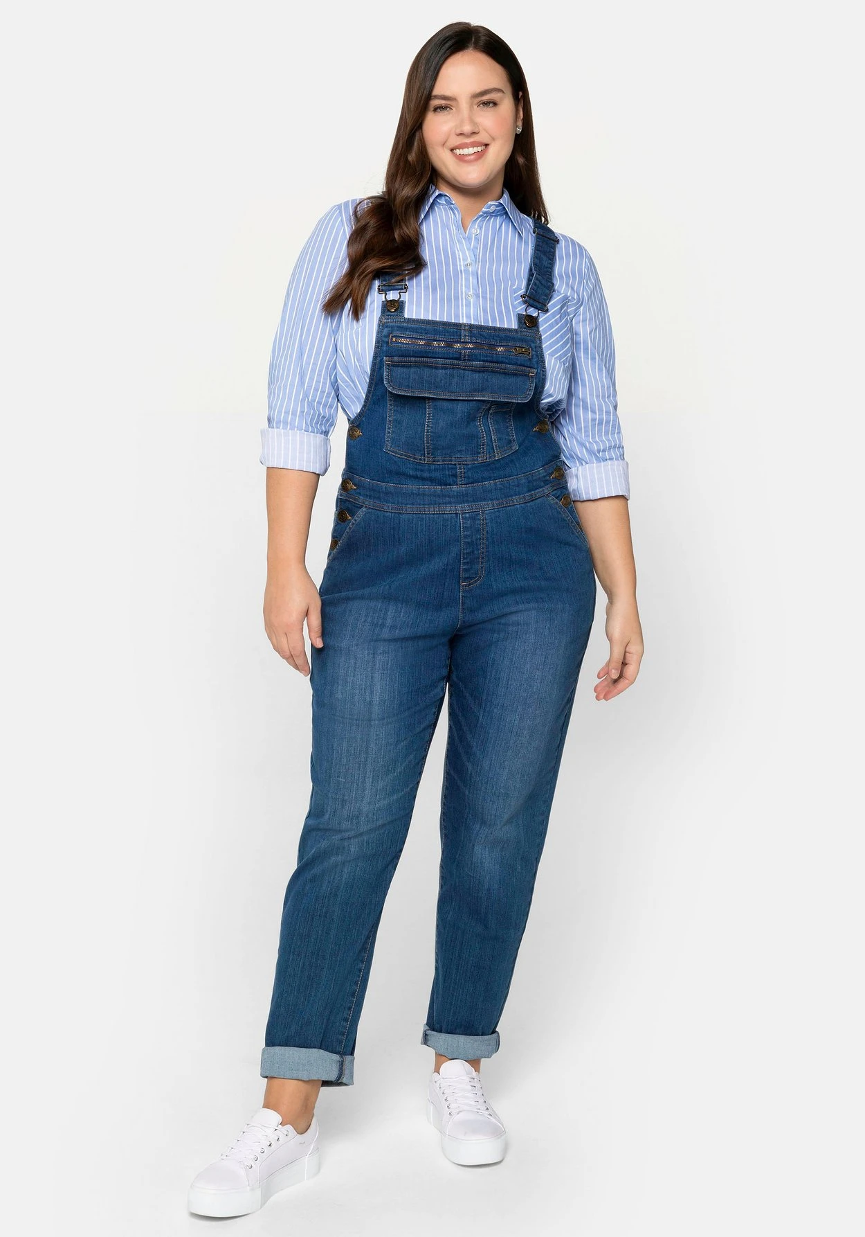 Latzhose aus Denim. Die Hose ist mit verstellbaren Trägern gearbeitet, als Eyecatcher dient eine breite Brusttasche mit Zipper. Zu schließen ist die Latzjeans mit seitlichen Knöpfen, für einen optimalen Sitz sorgt der Gummieinsatz auf Taillenhöhe hinten. Zwei seitliche Eingrifftaschen, zwei aufgesetzte Taschen hinten, die individuelle Waschung und kontrastfarbene Nähte ergänzen den lässigen und gleichzeitig verspielten Style.