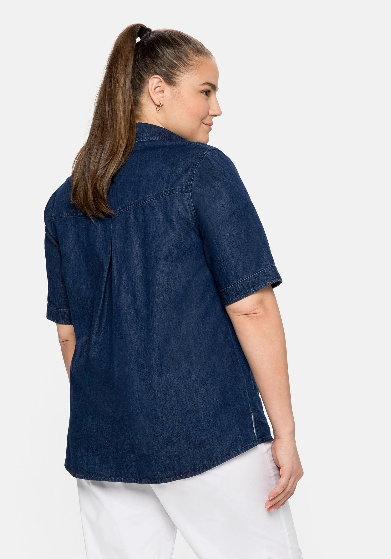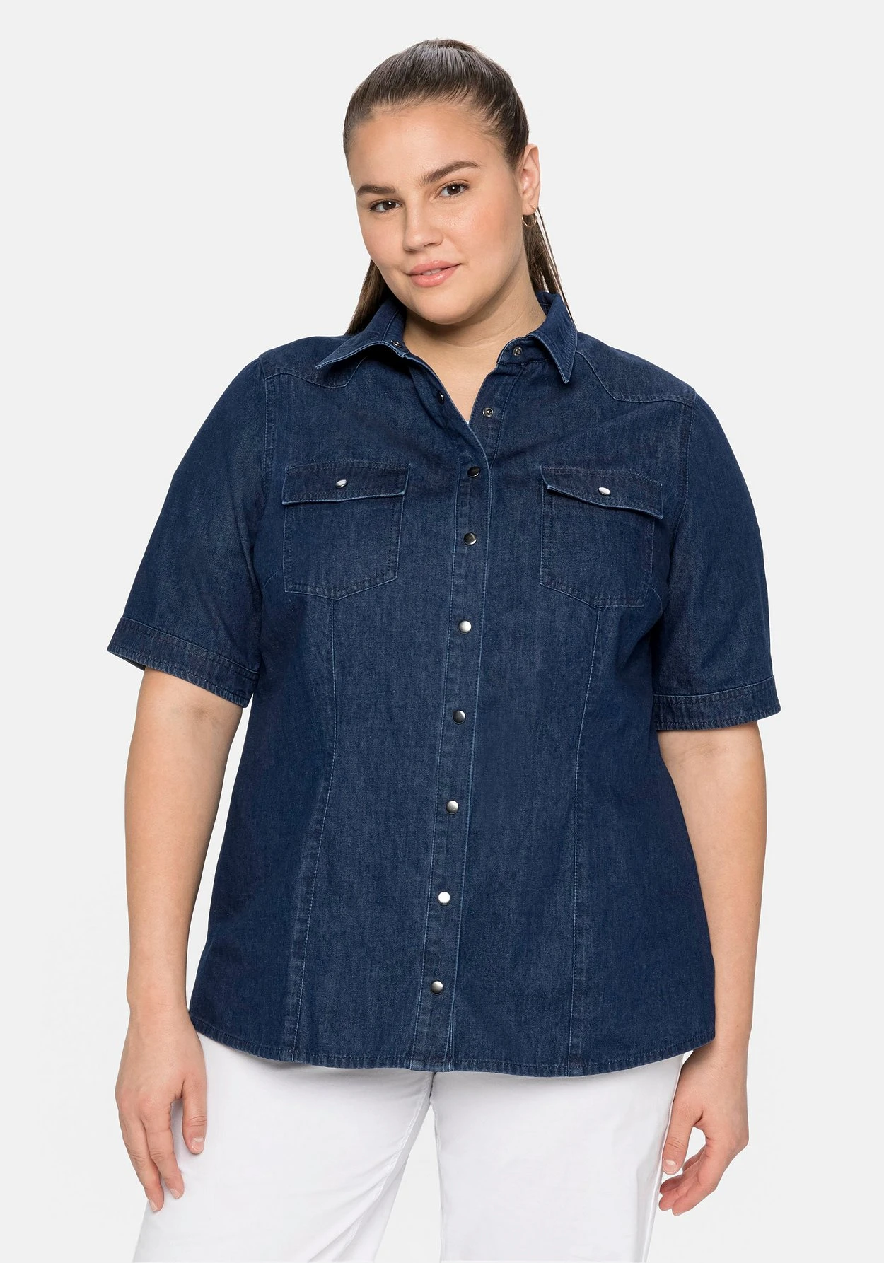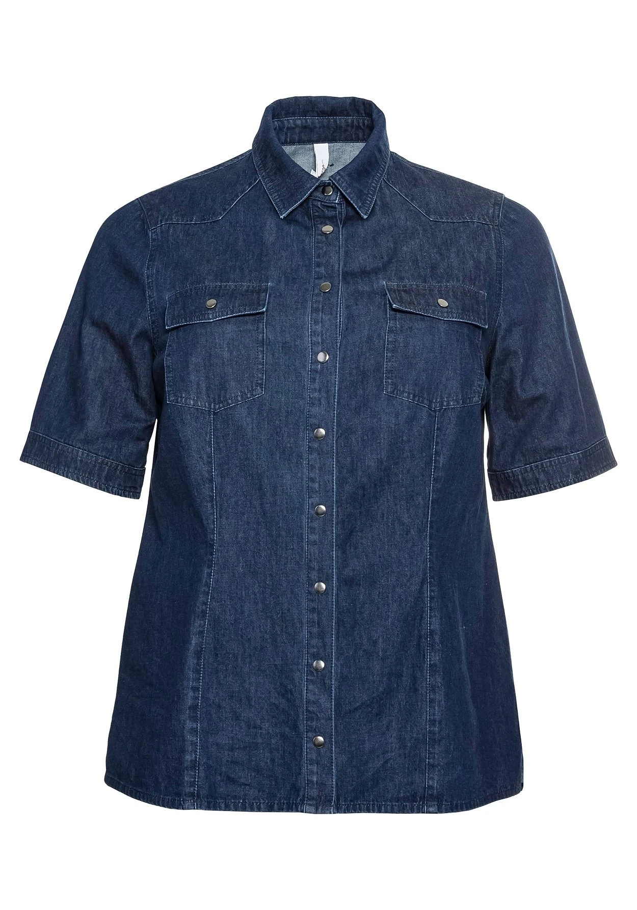 Jeanshemd mit Kragen und zwei aufgesetzten Brusttaschen. Dieses zeitlose Oberteil erhält durch die Druckknöpfe eine sportive Note. Weitere dekorative Details sind die Teilungsnähte an der Schulter sowie die Passe mit Kellerfalte im Rücken. Ein etwas länger geschnittener Ärmel schmeichelt dazu den Oberarmen.