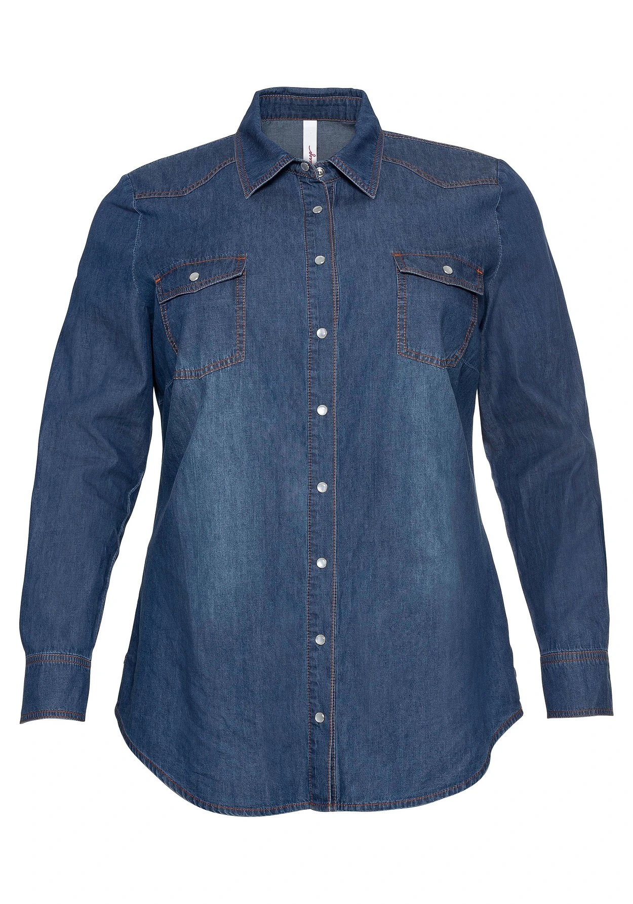 Jeansbluse mit zwei aufgesetzten Brusttaschen. Dieses kombinationsfreudige Oberteil erhält durch die Druckknöpfe in Perlmutt-Optik eine feminine Note. Weitere dekorative Details sind die kontrastfarbenen Ziernähte sowie die Passe mit Kellerfalten im Rücken. An den Manschettenärmeln befinden sich zwei Druckknöpfe. Für mehr Bequemlichkeit sind in den Saum Schlitze eingefasst.