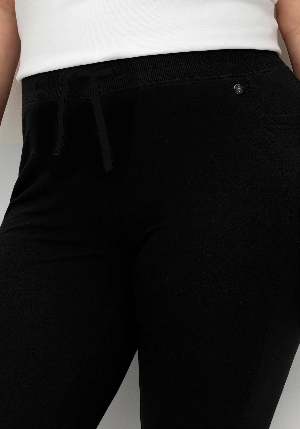 Jogginghose in schmaler Form. Für bequemen Tragekomfort sorgt der elastische Bund mit Bindebändchen, praktisch sind die beiden seitlichen Taschen. Ein kleines Metalllabel unterhalb des Bundes rundet den bequemen Look ab.