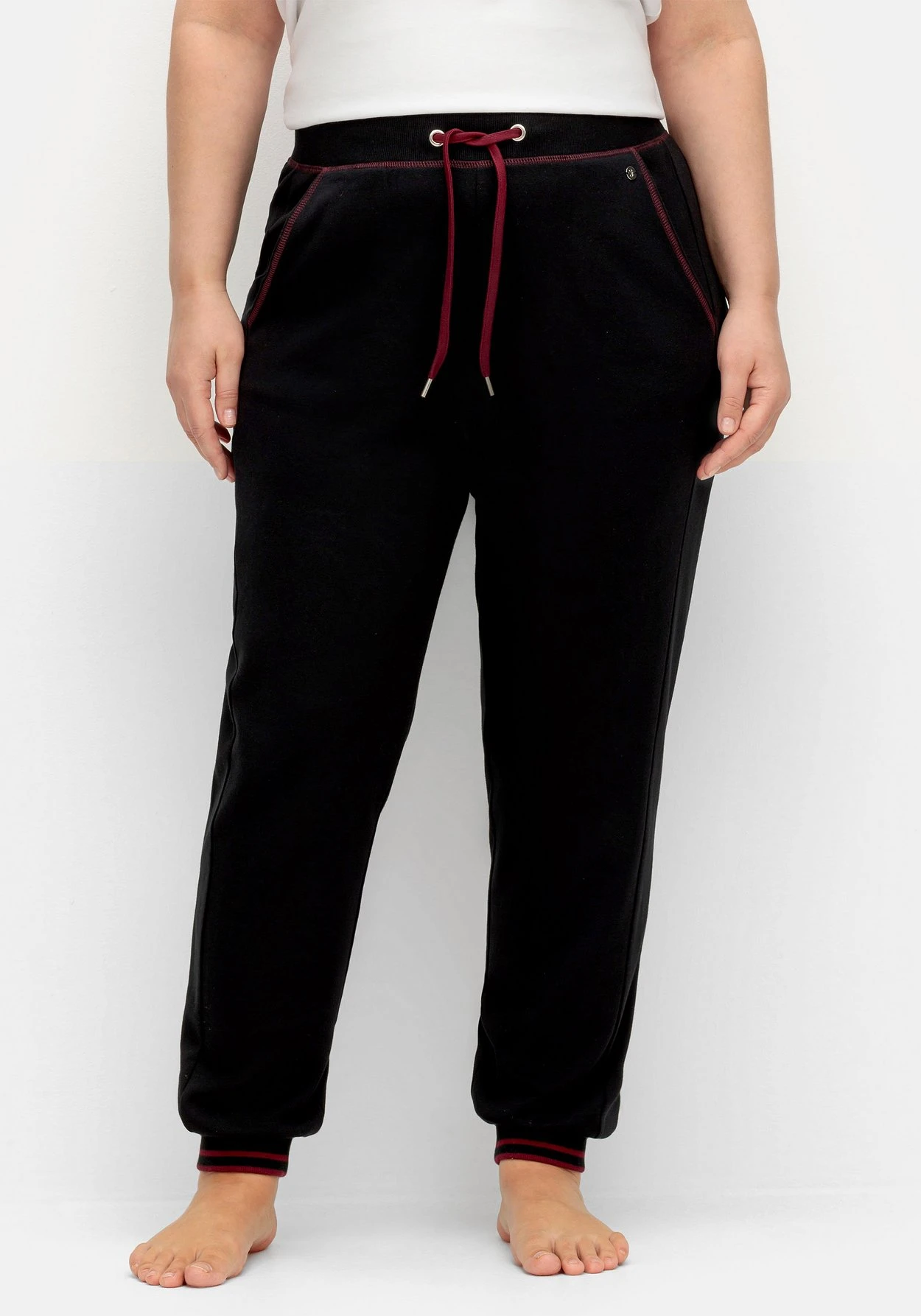 Jogginghose mit Kontrastelementen. Am elastischen Bund befinden sich farblich abgesetzte Bindebändchen. Für optische Highlights sorgen die Kontrastnähte an den beiden Eingrifftaschen und am Bund, ein Kontrastringel am gerippten Beinabschluss unterstreicht den sportiven Style. Mit einem passenden Oberteil aus unserer Homewear-Kollektion ist der Wohlfühl-Look komplett. Perfekt zum Relaxen!