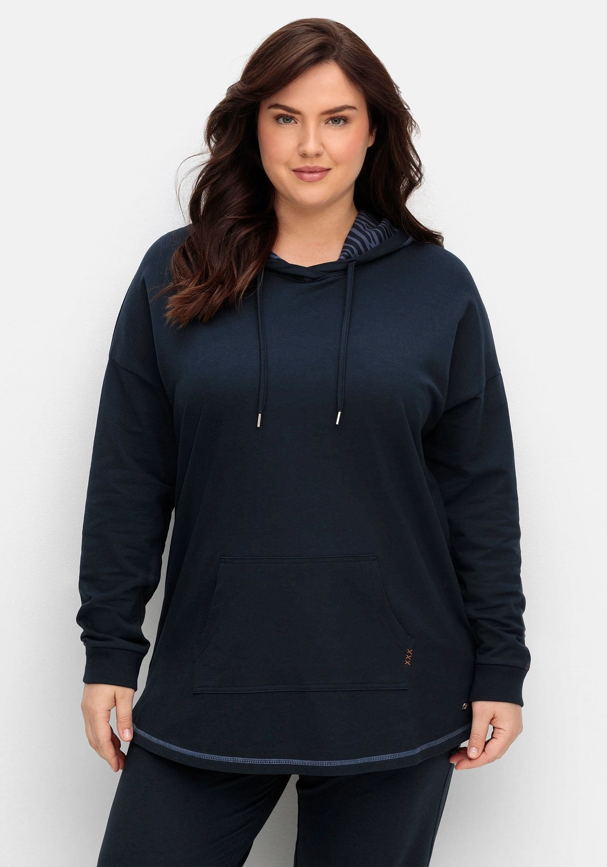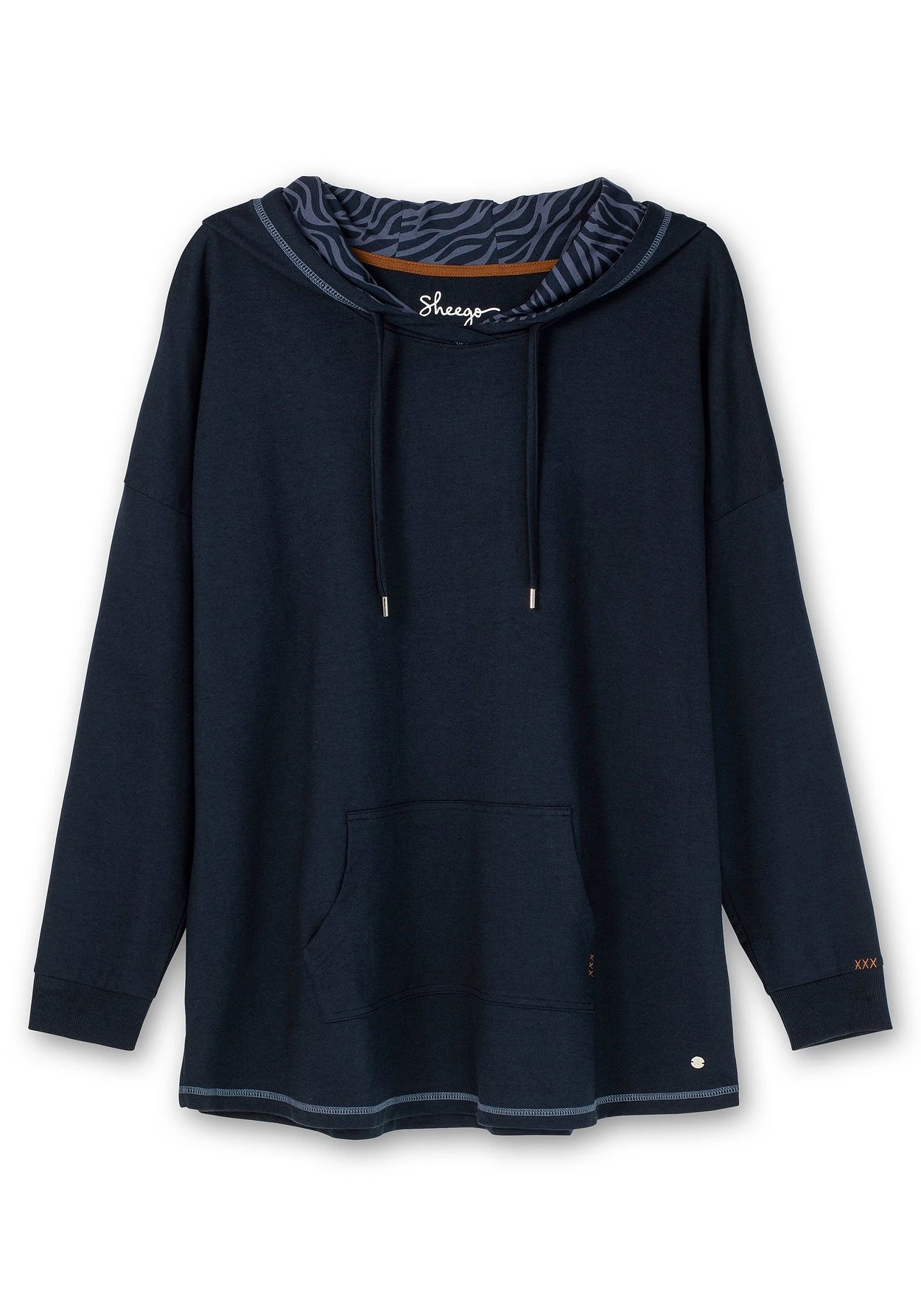 Bequemes Oversized-Sweatshirt zum Relaxen. Die Kapuze wird durch das Innenfutter mit Animalprint kontraststark betont. Überschnittene Schultern, Rippbündchen am Ärmelsaum und die Kängurutasche verleihen dem Hoodie eine sportive Optik. Kleine Stickereien und die kontrastfarbenen Ziernähte setzen dekorative Akzente. Ein perfekter Style zum Relaxen, als Homewear oder für den Alltag!