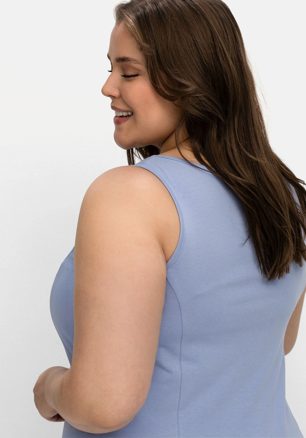 Dieses Kleid mit breiten, ärmellosen Trägern ist ein toller Begleiter für den Sommer. Sein schlichtes Design mit Rundhalsausschnitt macht es zu einem echten Kombitalent. In bequemer A-Linie.