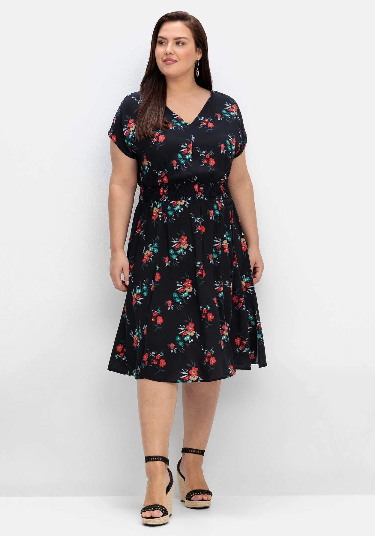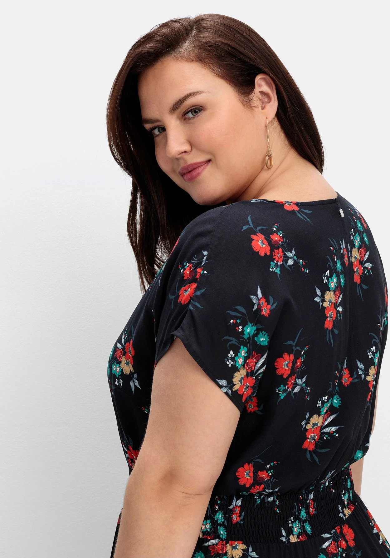 Das Material fällt schön dank weich fließender Viskose, die mit gutem Gewissen getragen werden kann. Denn für die Herstellung von LENZING™ ECOVERO™ Viskose werden ausschließlich zertifizierte, nachhaltige Holzressourcen verwendet. Auch der gesamte Produktionsprozess entspricht streng den Richtlinien des EU Öko-Labels. LENZING™ und ECOVERO™ sind Marken der Lenzing AG. sheego cares!