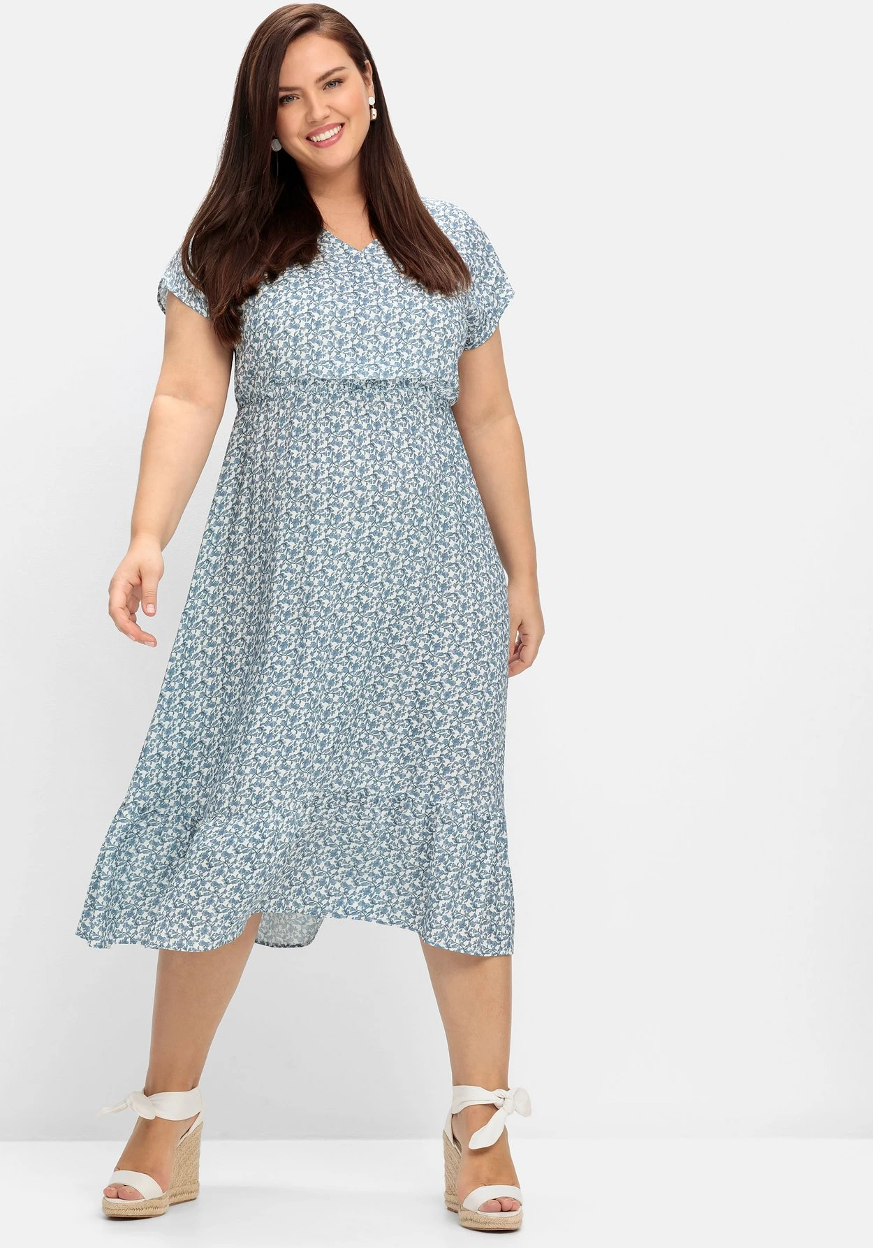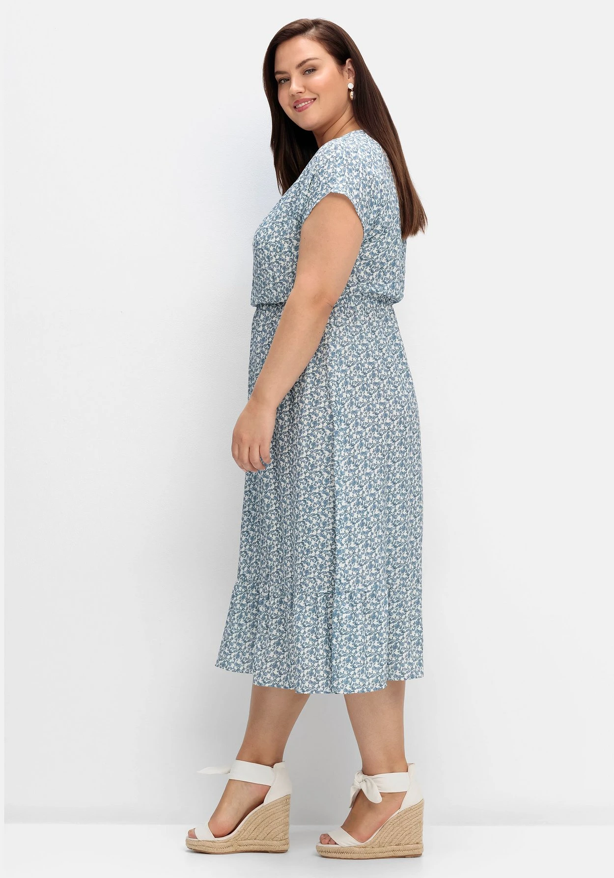 Das weich fließende Material trägt sich auch an warmen Tagen sehr angenehm. Für die Herstellung von LENZING™ ECOVERO™ Viskose werden ausschließlich zertifizierte, nachhaltige Holzressourcen verwendet. Auch der gesamte Produktionsprozess entspricht streng den Richtlinien des EU Öko-Labels. sheego cares!