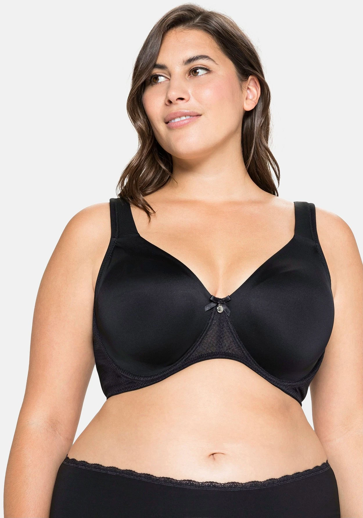 In sehr bequemer, die Brust abdeckender Schnittform. Die geschickte Curvy-Schnittform sorgt für optimale Entlastung.