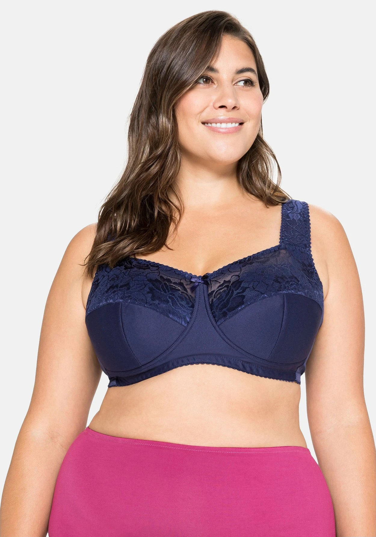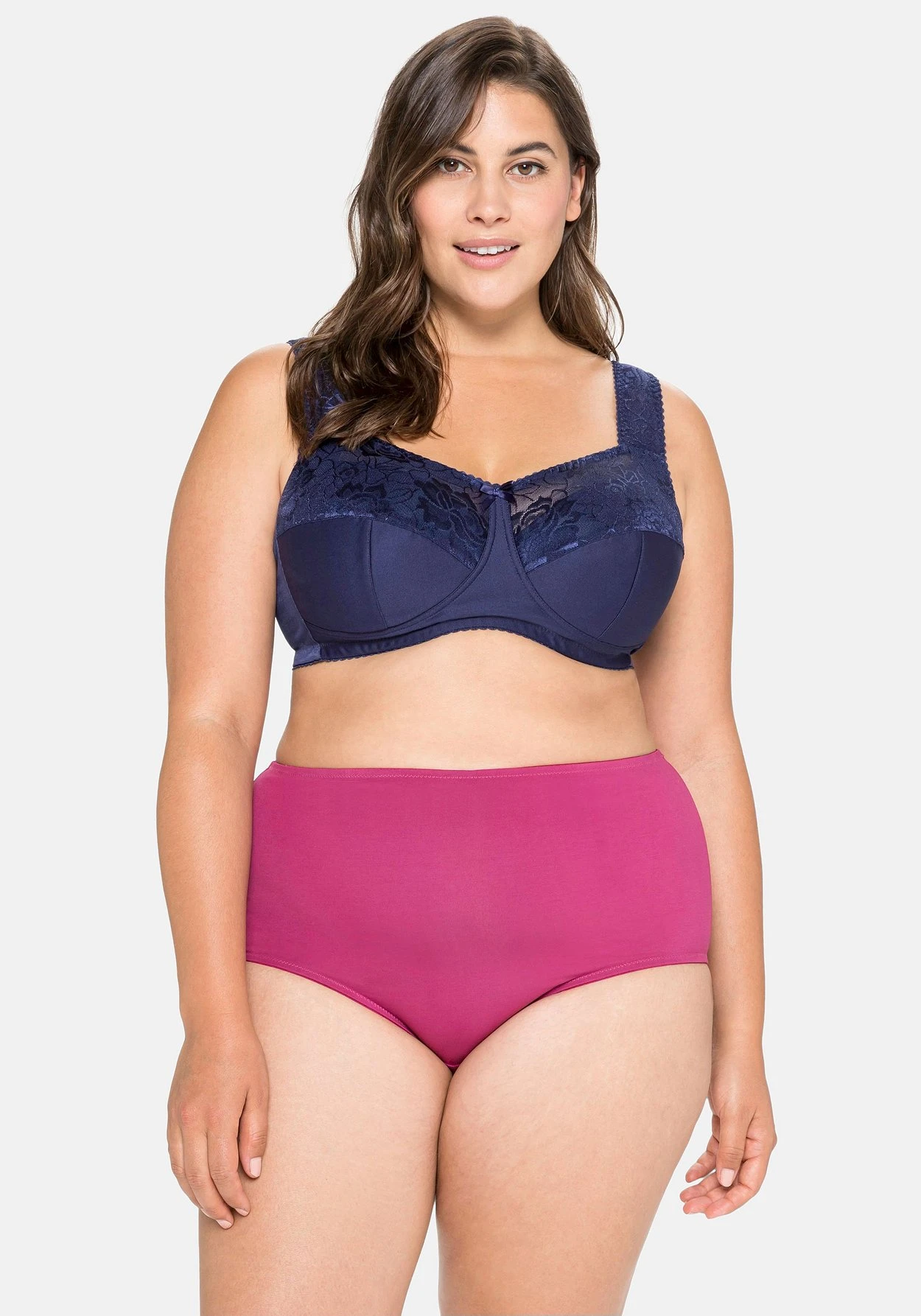 In sehr bequemer, die Brust abdeckender Schnittform. Die geschickte Curvy-Schnittform sorgt für optimale Entlastung.