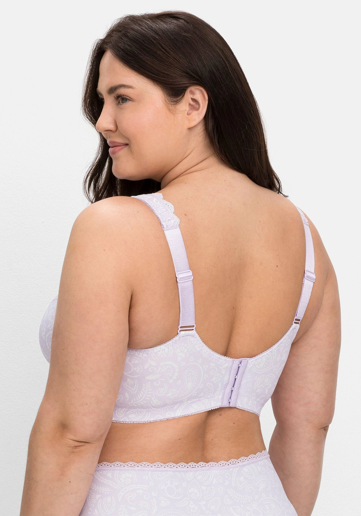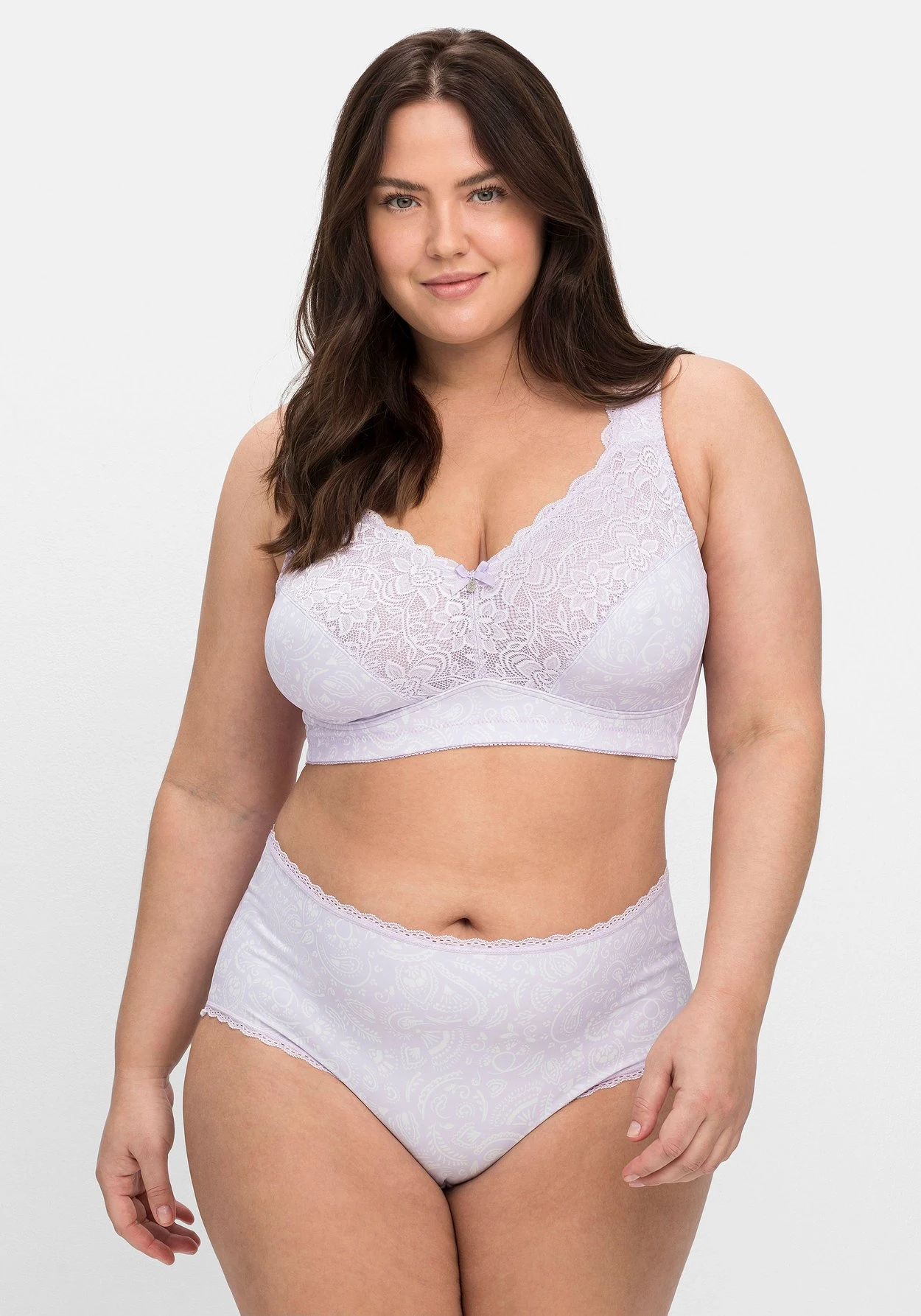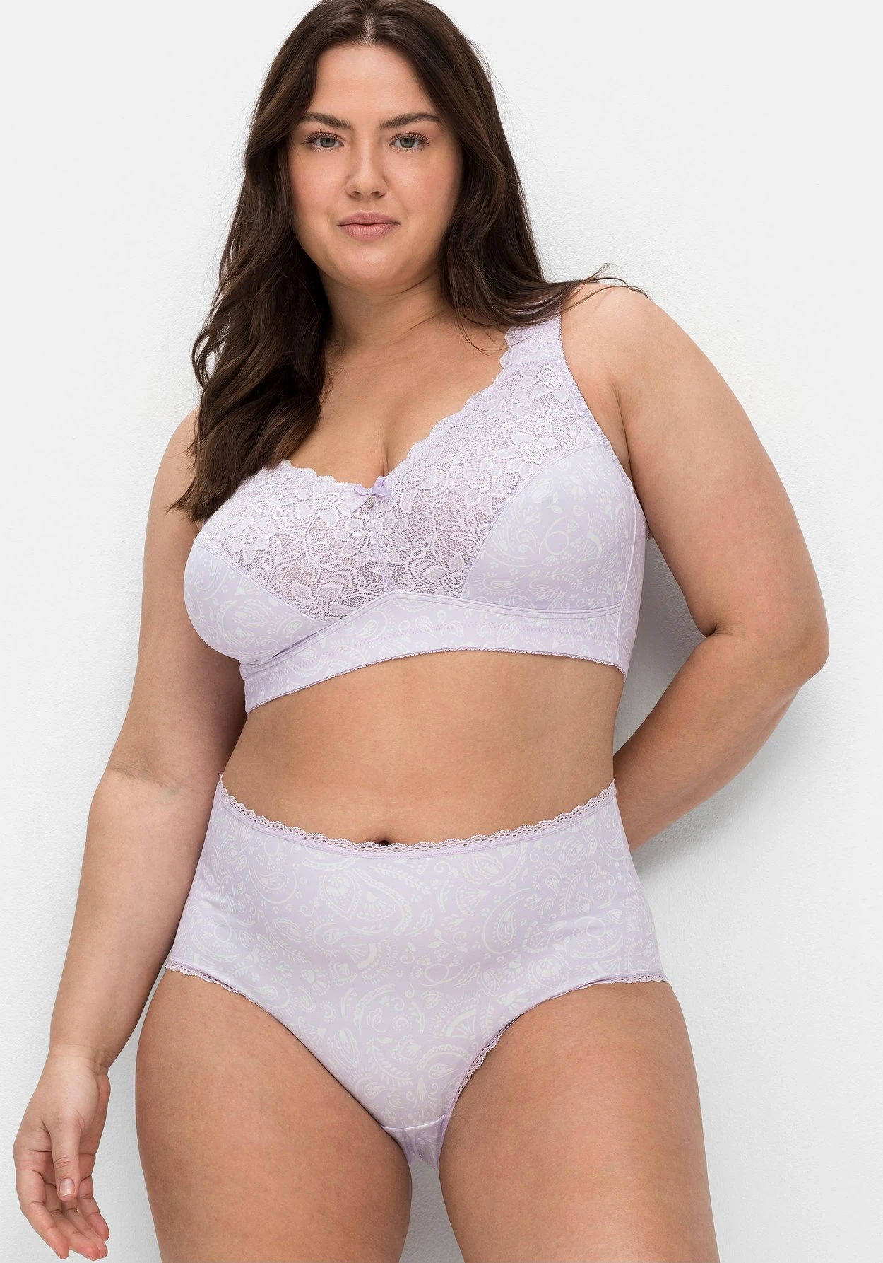 Komfort-BH ohne Bügel. Die zarte Spitze wird durch die doppellagige Verarbeitung blickdicht, ein Besatz aus Spitze am Ausschnitt ergänzt den femininen Style. Dazu überzeugt der bügellose BH mit hohem Tragekomfort: Die Cups decken die Brust komplett ab, der hohe Mittelsteg gibt Halt und die breiten Träger schneiden nicht ein. Zusätzlich stützt und entlastet das breite Unterbrustgummi.