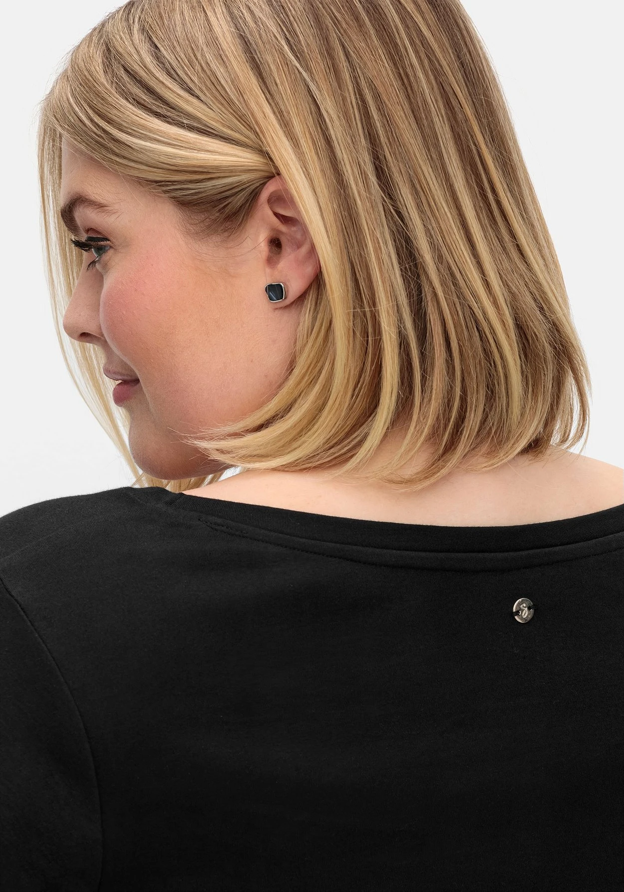 Die glatte Shirtware aus reiner Baumwolle trägt sich sehr angenehm auf der Haut. Mit deinem Kauf unterstützt du die Arbeit von „Cotton made in Africa“. Die Initiative der Aid by Trade Foundation leistet durch Handel Hilfe zur Selbsthilfe für Kleinbauern in Subsahara Afrika und trägt damit maßgeblich zur Verbesserung der Lebensbedingungen sowie zum Umweltschutz bei. Dafür setzt sie nicht auf Spenden, sondern baut eine internationale Allianz von Textilunternehmen auf, die den Rohstoff Cotton made in Africa nachfragt. sheego cares!