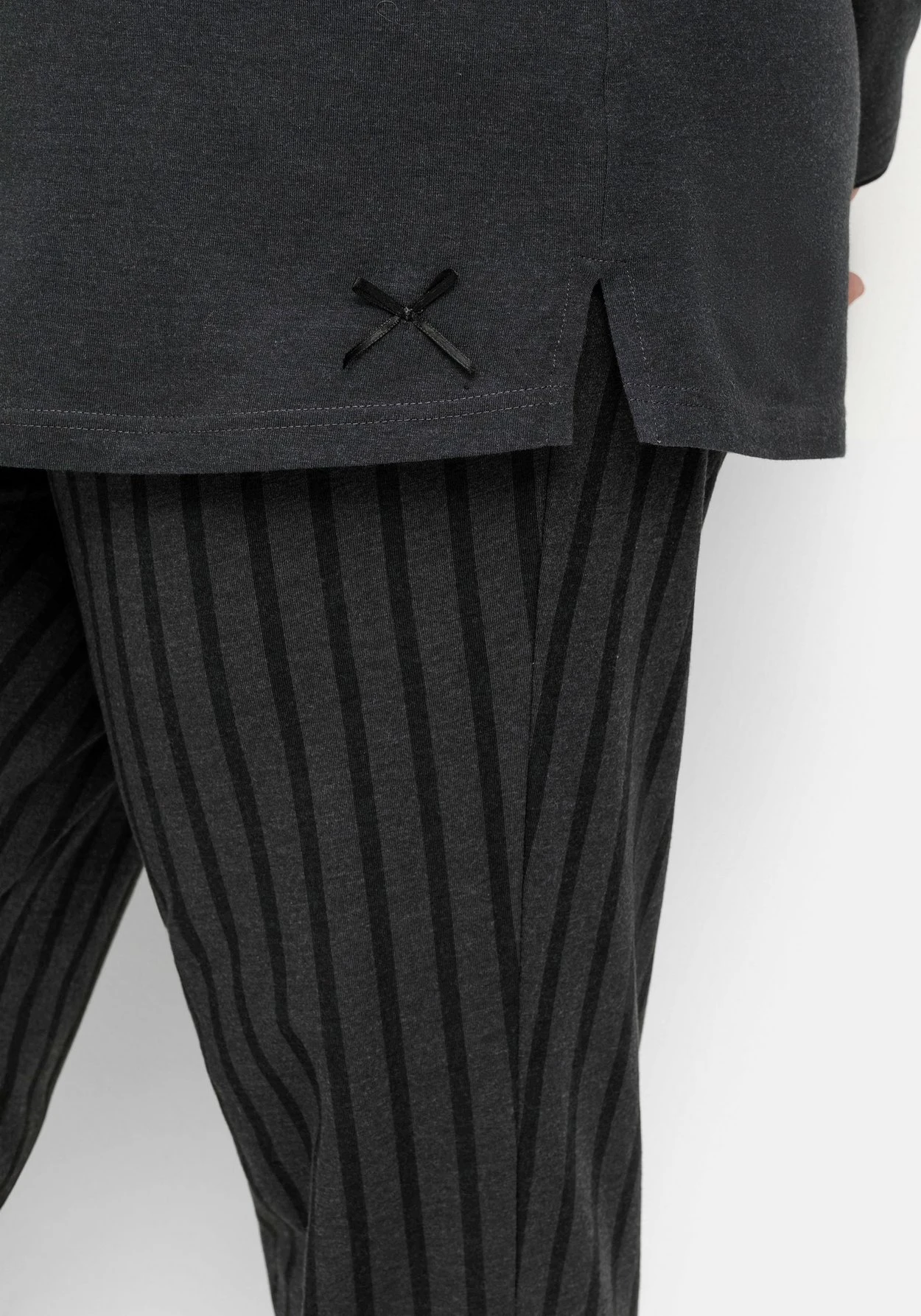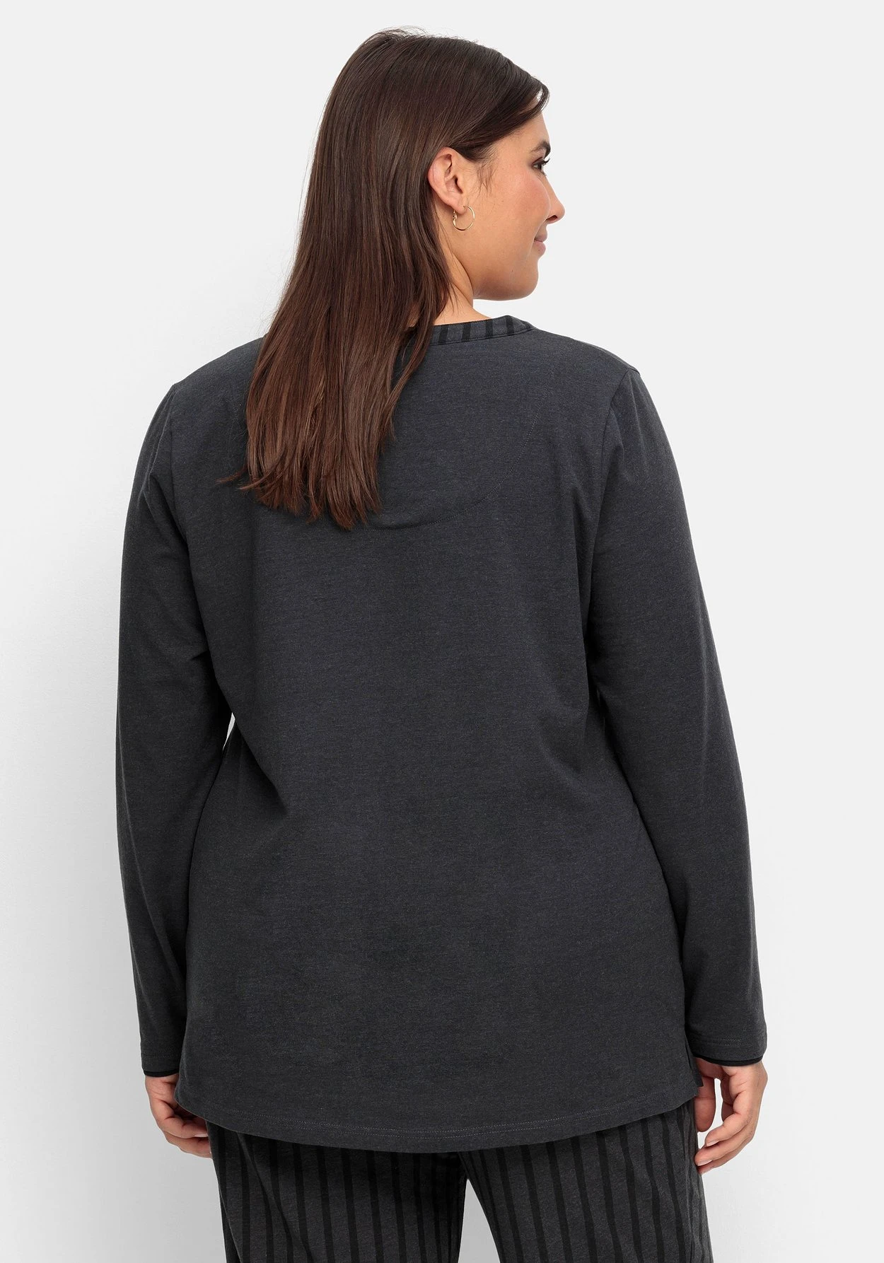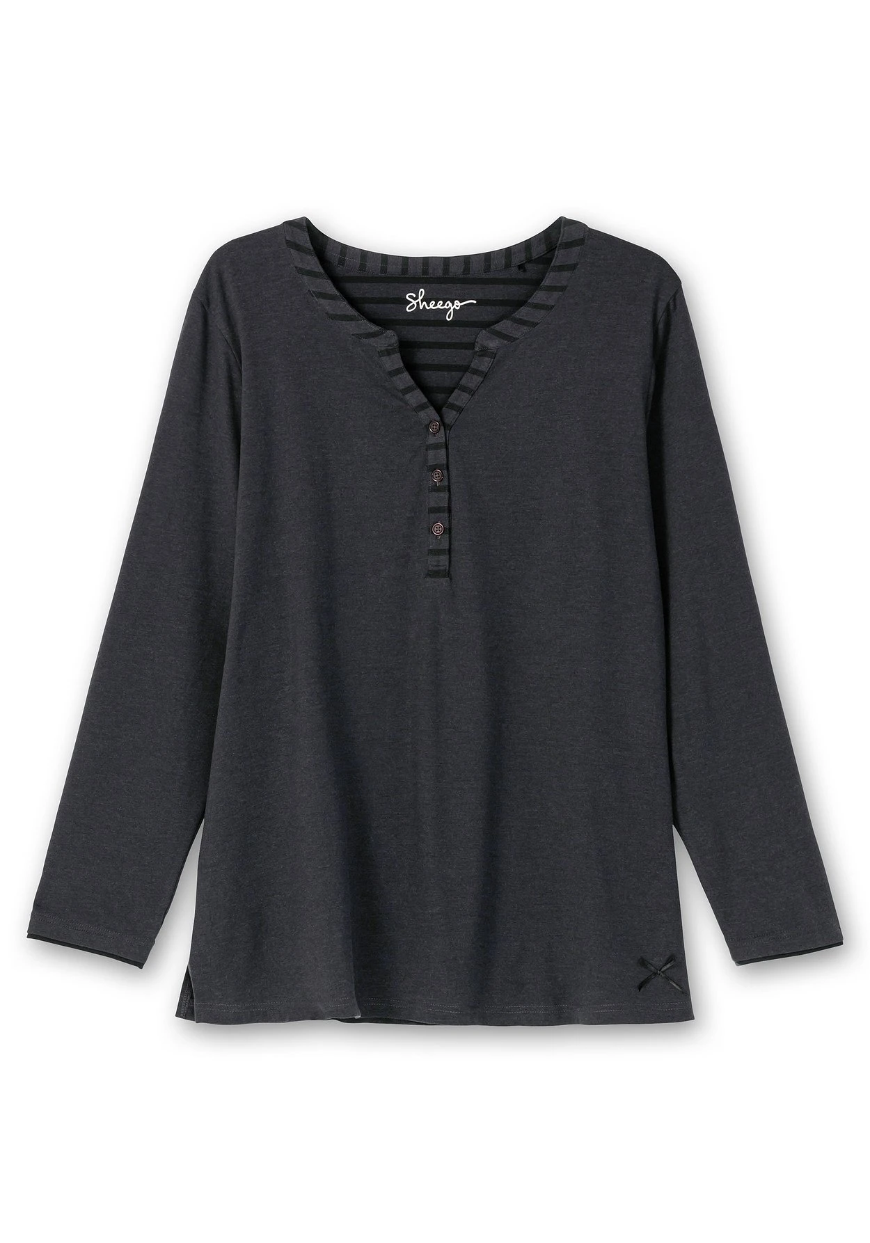 Schlafshirt mit langem Arm. Der Rundhalsausschnitt ist mit V-Schlitz und Zierknopfleiste gearbeitet, oberhalb des Saumes befindet sich eine kleine Zierschleife. Durch den Mix & Match-Charakter kann das Oberteil mit allen Styles der Nachtwäsche-Kollektion kombiniert werden.