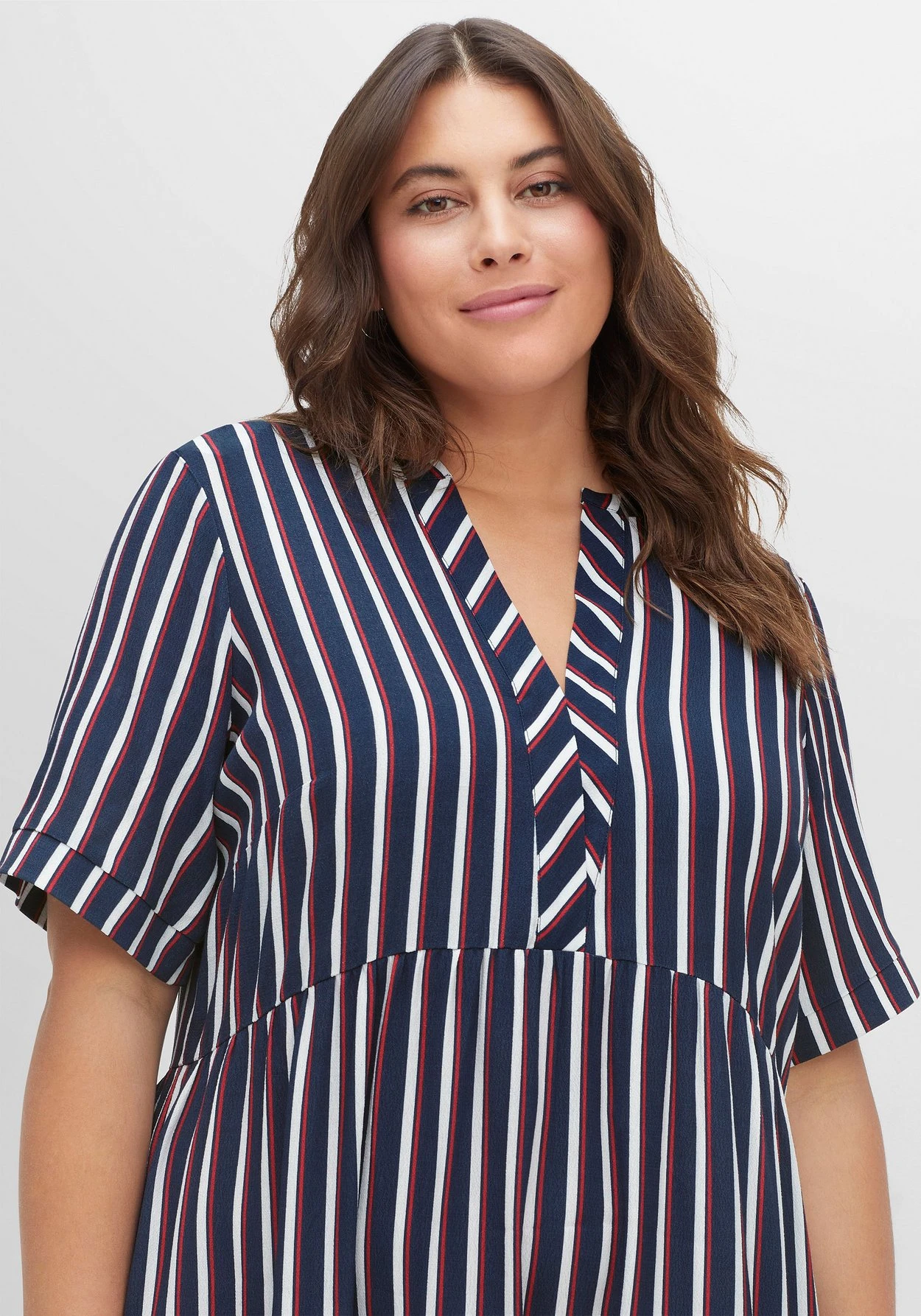 Die Qualität mit hohem, nachhaltigem Viskoseanteil fällt weich fließend und lässt sich mit gutem Gewissen tragen. Denn für die Herstellung von LENZING™ ECOVERO™ Viskose werden ausschließlich zertifizierte, nachhaltige Holzressourcen verwendet. Auch der gesamte Produktionsprozess entspricht streng den Richtlinien des EU Öko-Labels. LENZING™ und ECOVERO™ sind Marken der Lenzing AG. sheego cares!
